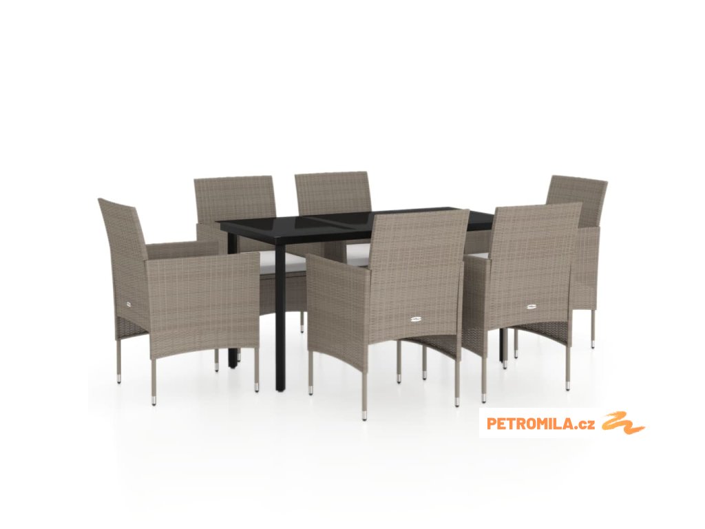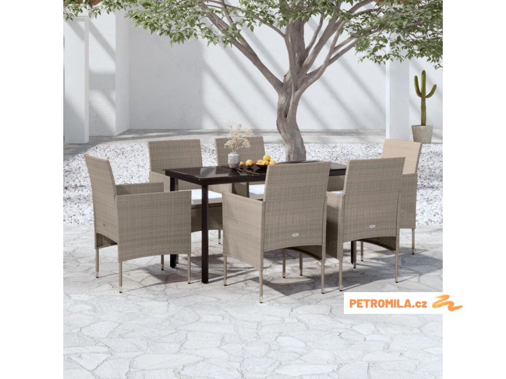 7dílný zahradní jídelní set s poduškami béžový a černý