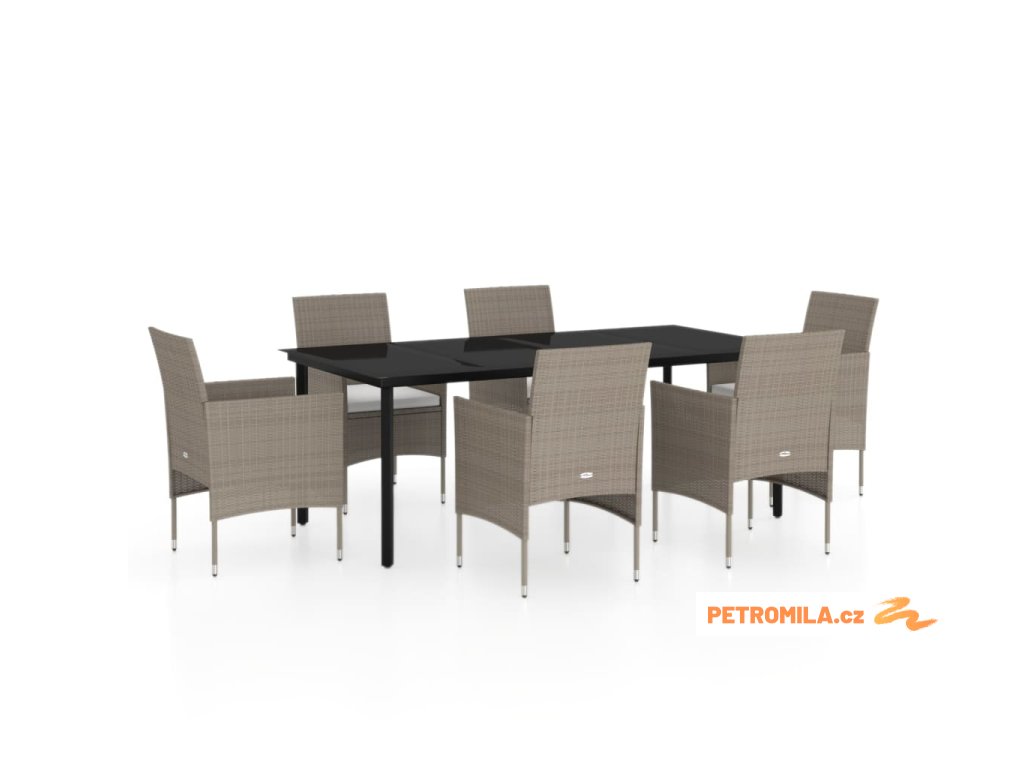 7dílný zahradní jídelní set s poduškami béžový a černý