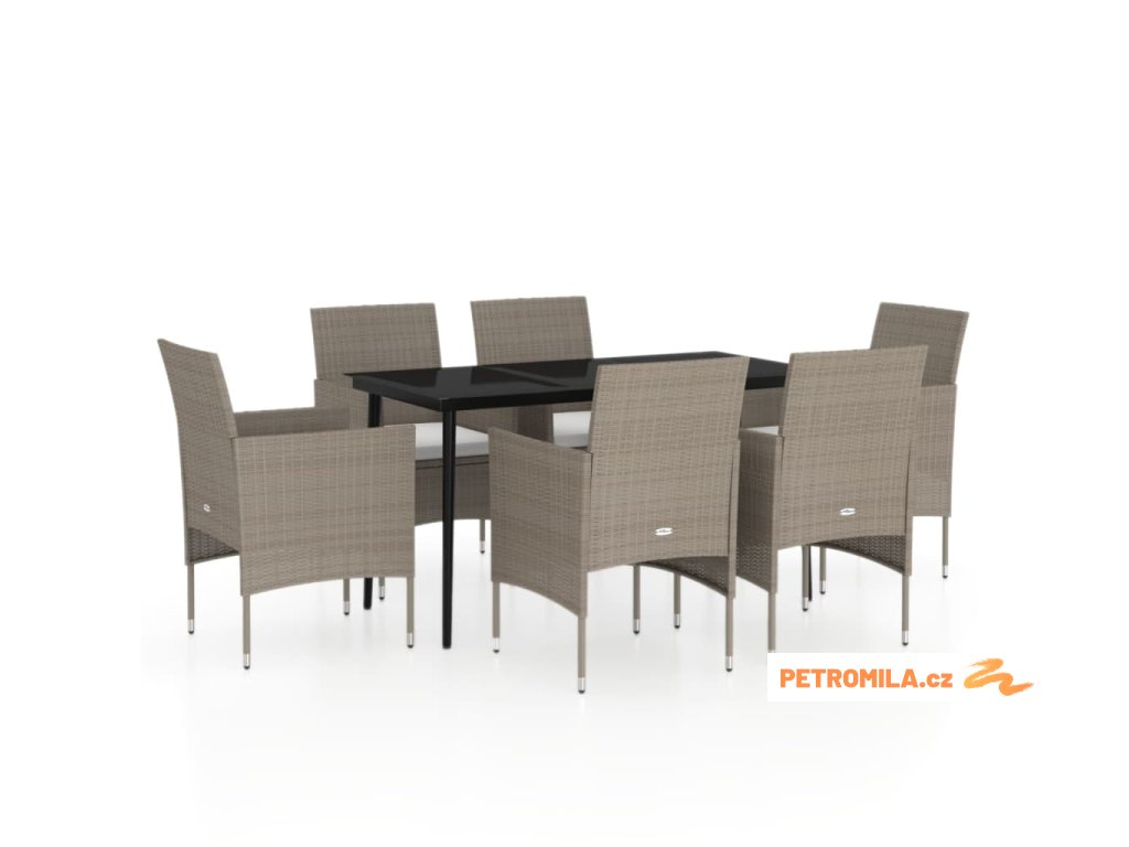 7dílný zahradní jídelní set s poduškami béžový a černý