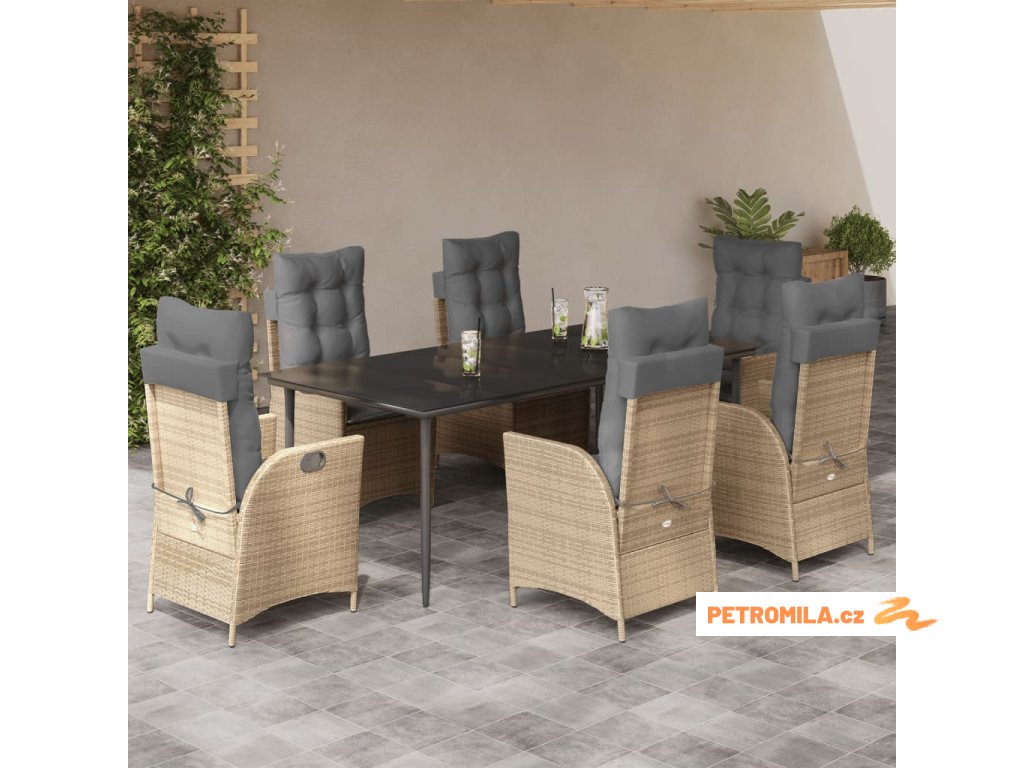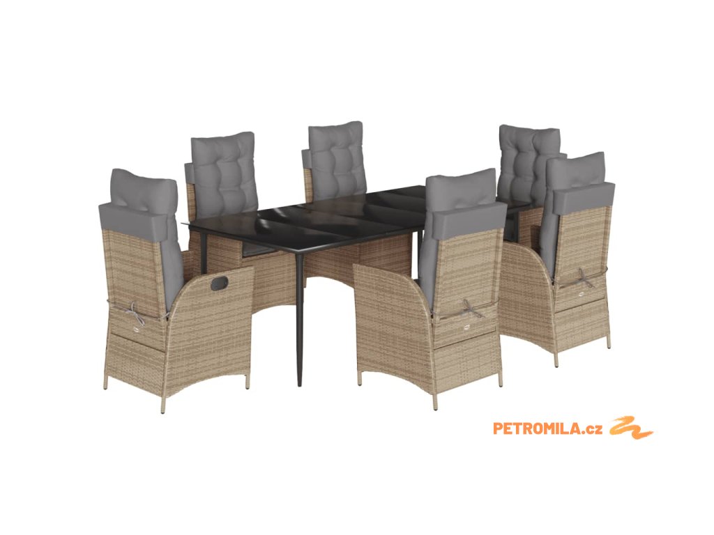 7dílný zahradní jídelní set s poduškami béžový polyratan
