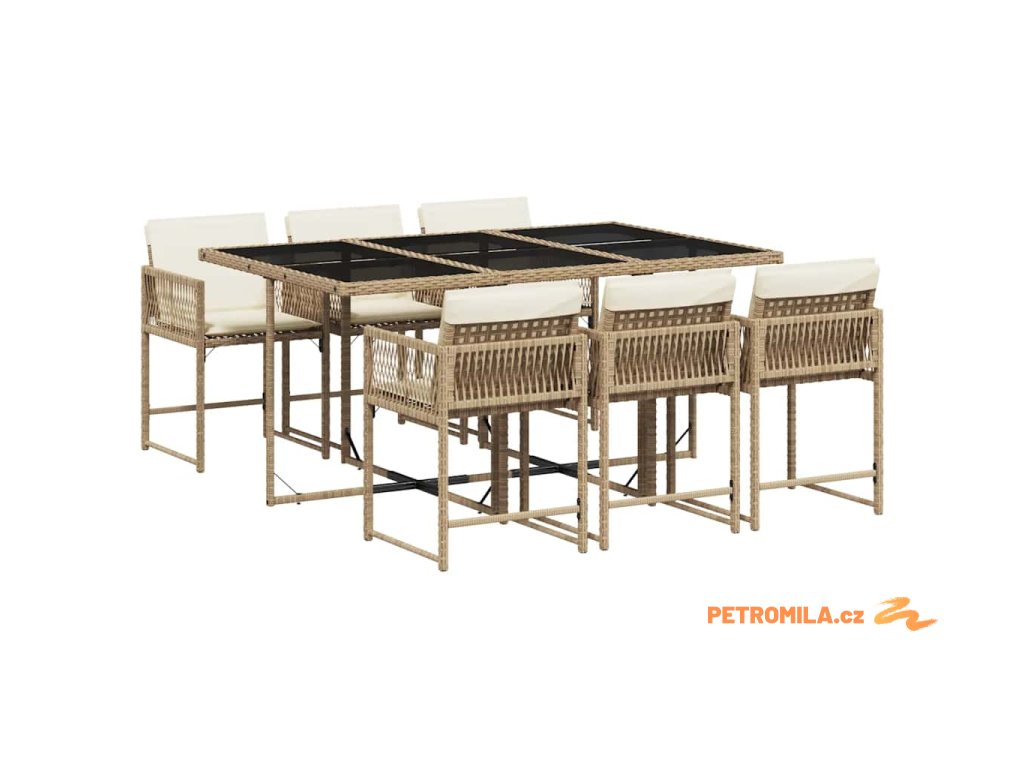 7dílný zahradní jídelní set s poduškami béžový polyratan