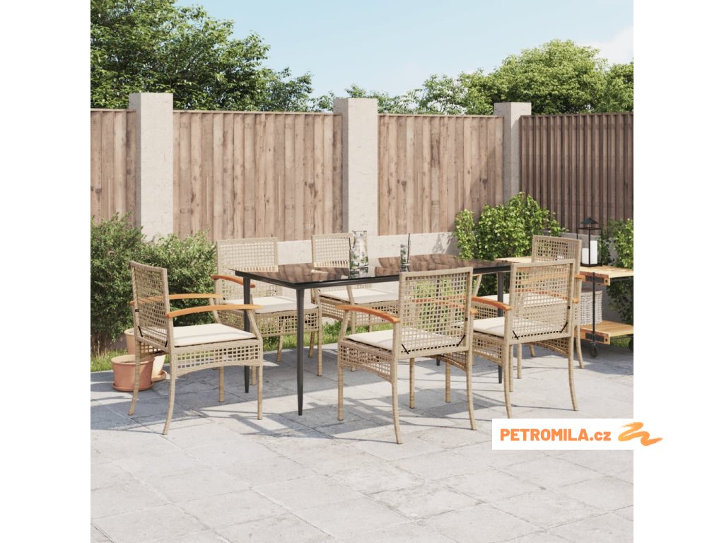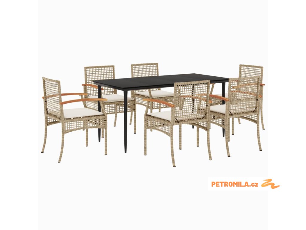 7dílný zahradní jídelní set s poduškami béžový polyratan