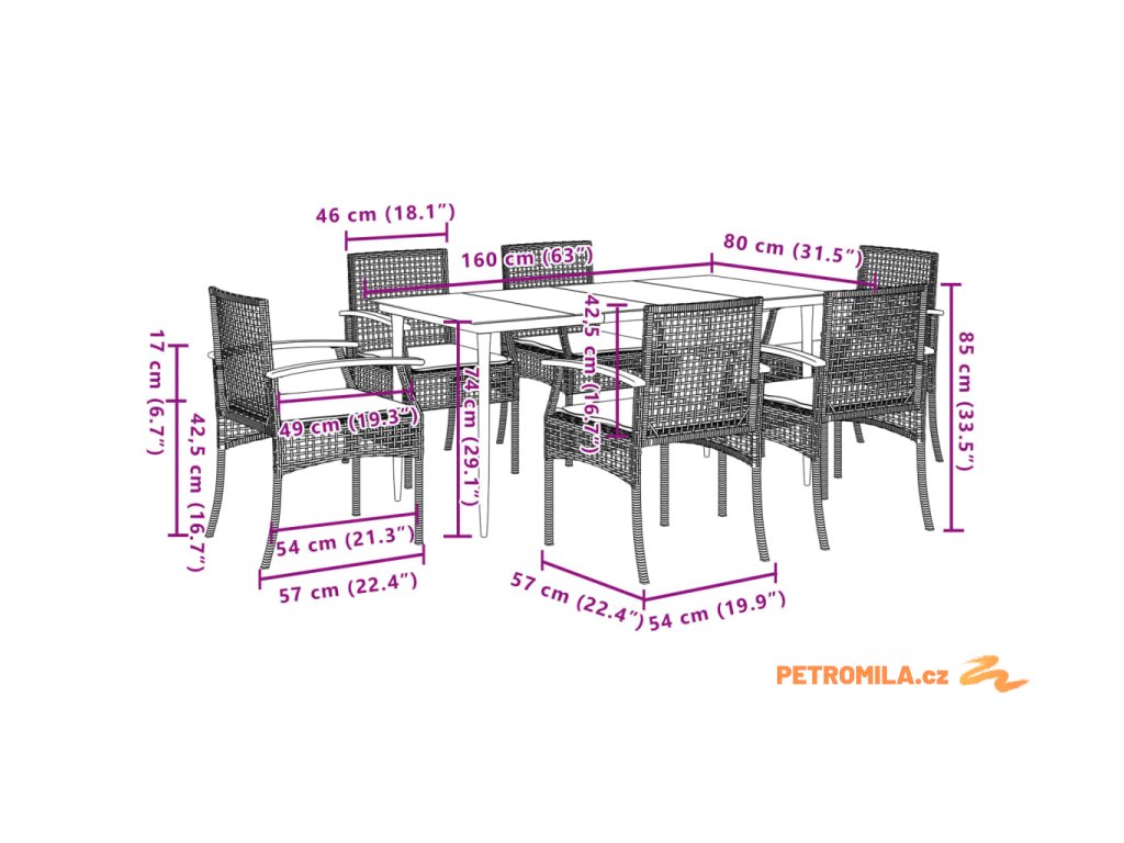 Sada zahradních pohovek s polštářem 7 pcs Hnědá Poly ratan