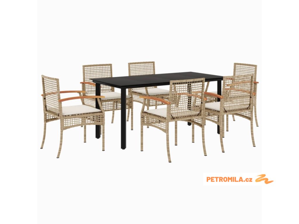 7dílný zahradní jídelní set s poduškami béžový polyratan