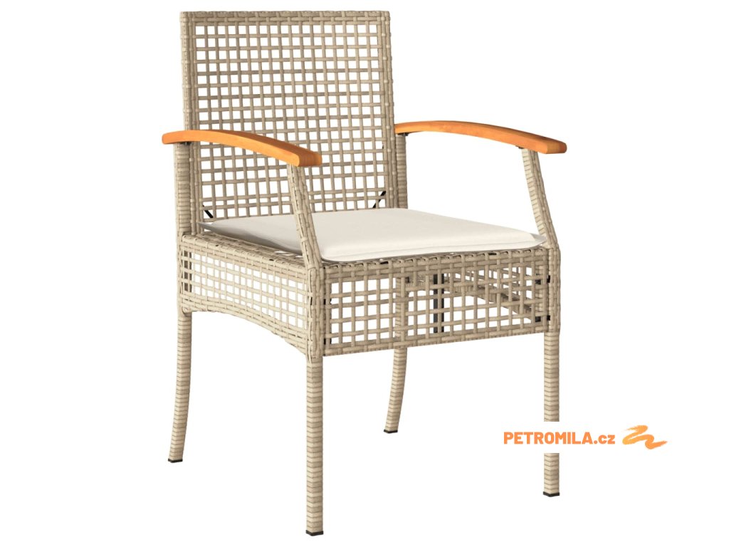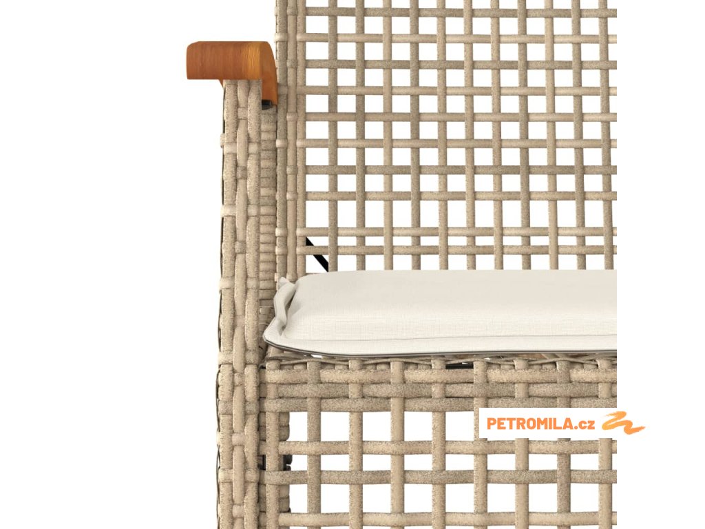 - Materiál: PE ratan, práškově lakovaná ocel, masivní akáciové dřevo s olejovou povrchovou úpravou