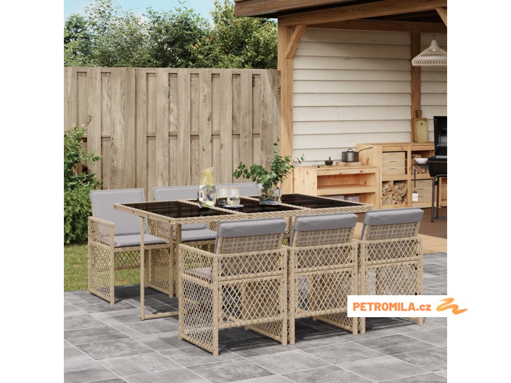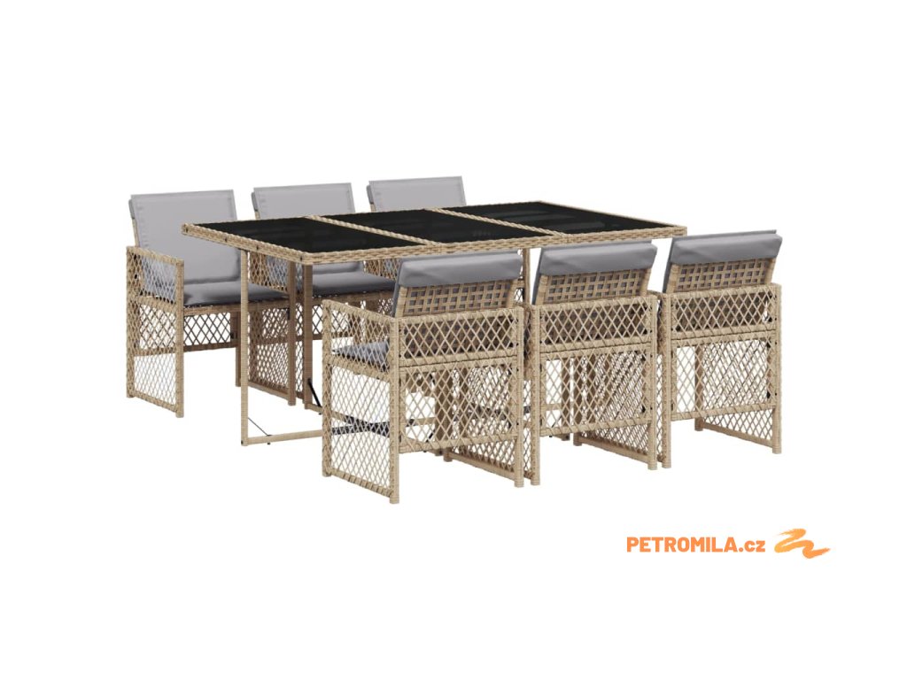 7dílný zahradní jídelní set s poduškami béžový polyratan