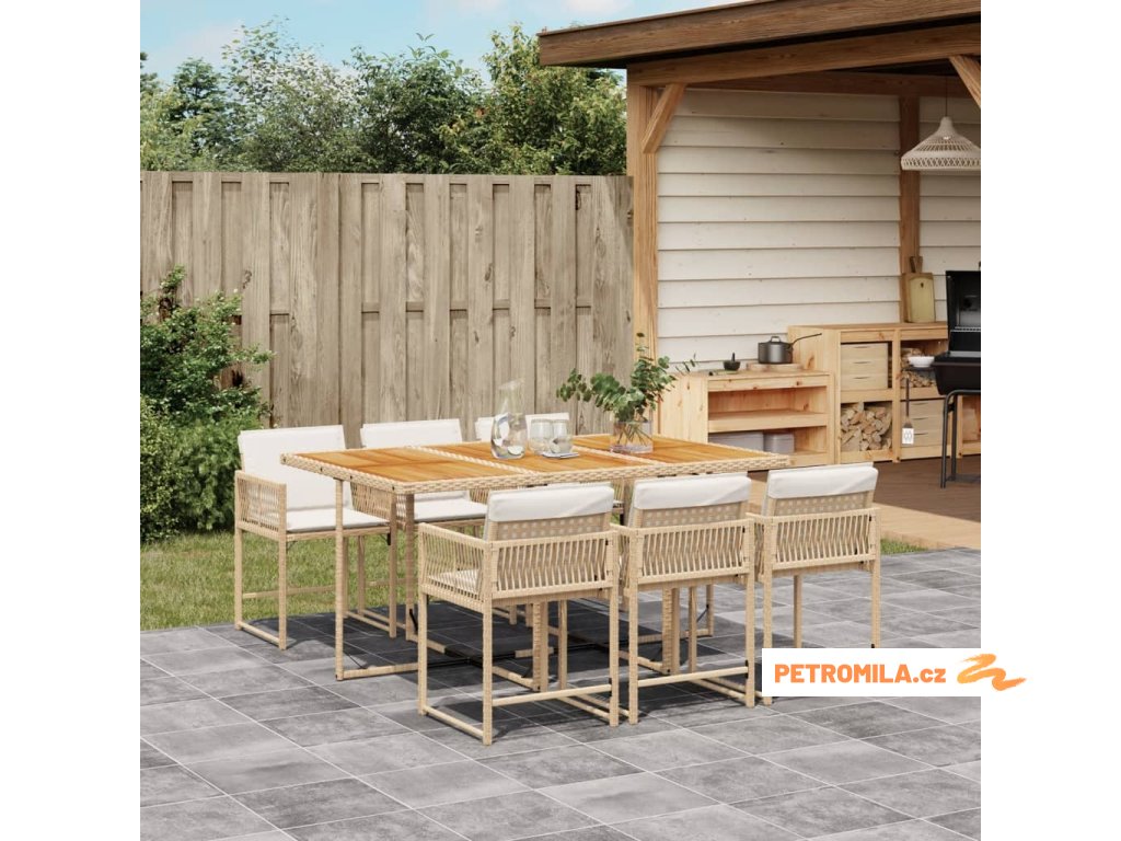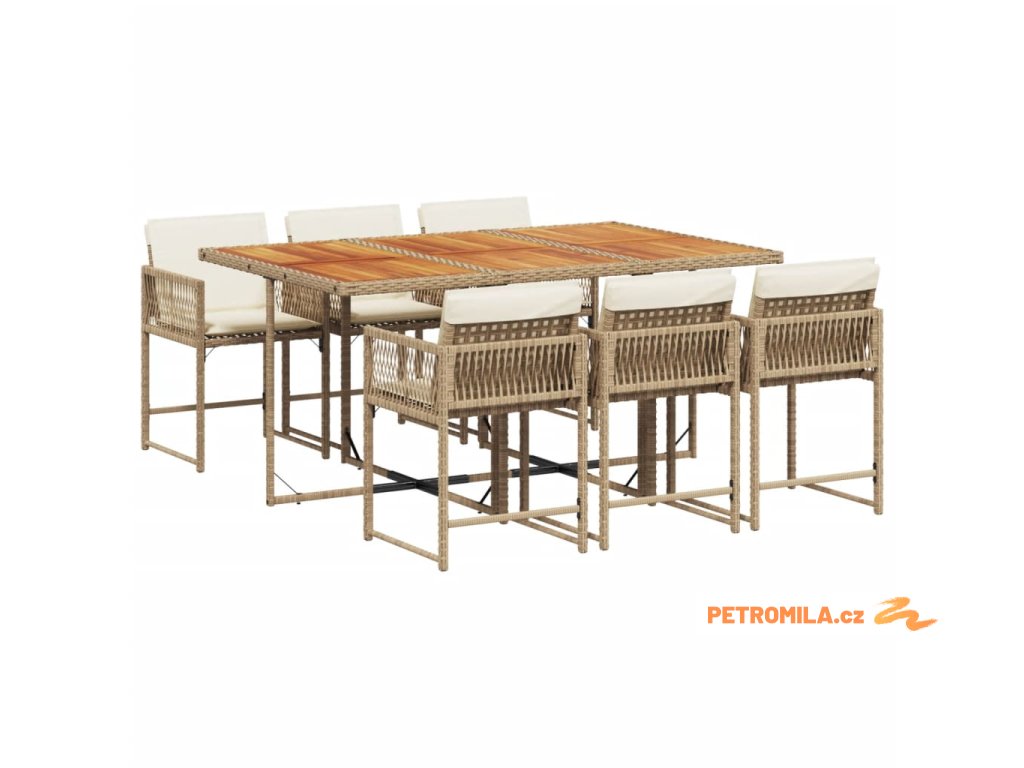 7dílný zahradní jídelní set s poduškami béžový polyratan