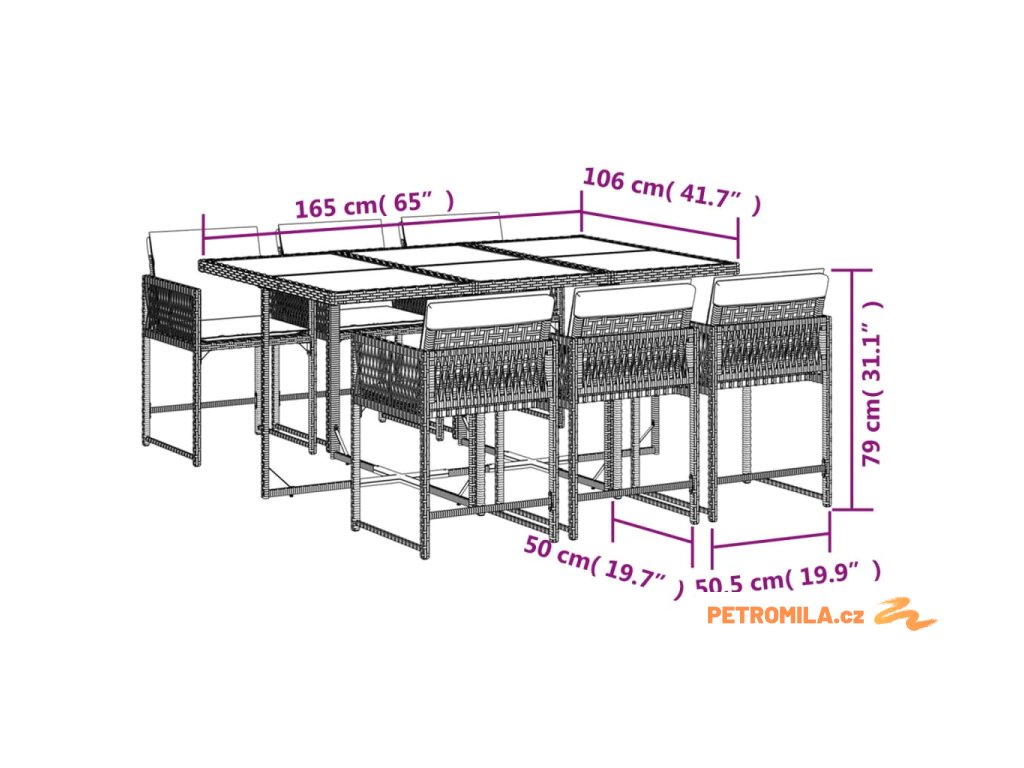 - Materiál: PE ratan, práškově lakovaná ocel, masivní akáciové dřevo