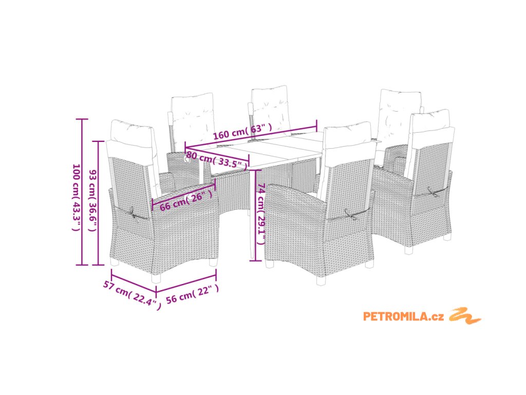 - Rozměry při poloze vsedě: 57 x 66 x 93 cm (Š x H x V)