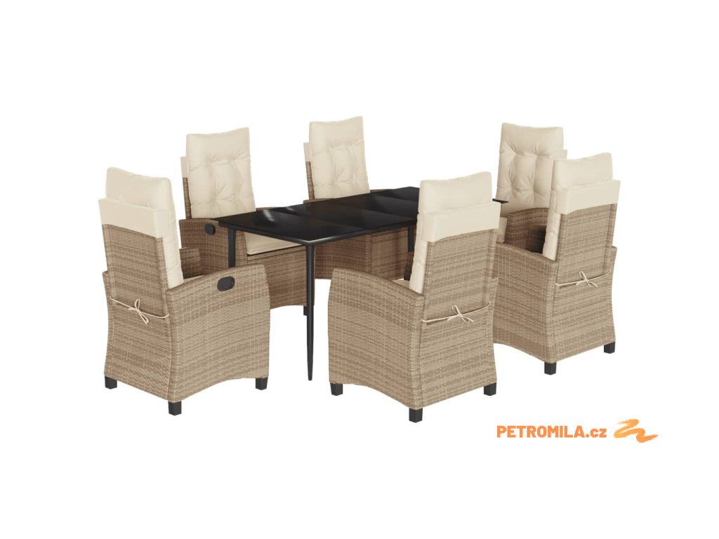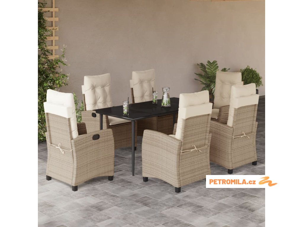 7dílný zahradní jídelní set s poduškami béžový polyratan