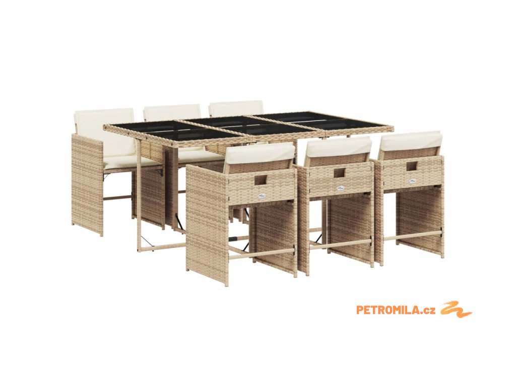 7dílný zahradní jídelní set s poduškami béžový polyratan