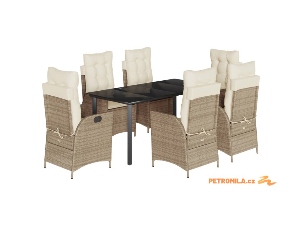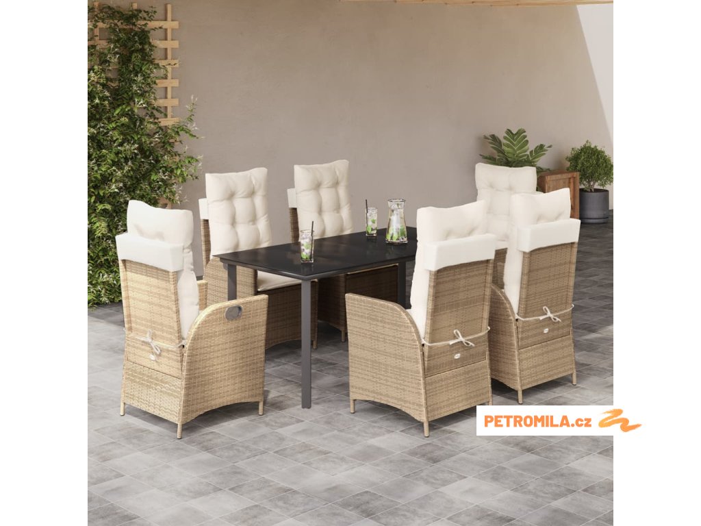 7dílný zahradní jídelní set s poduškami béžový polyratan