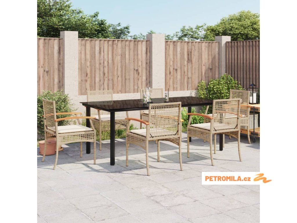 7dílný zahradní jídelní set s poduškami béžový polyratan