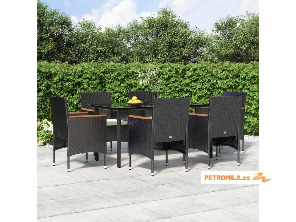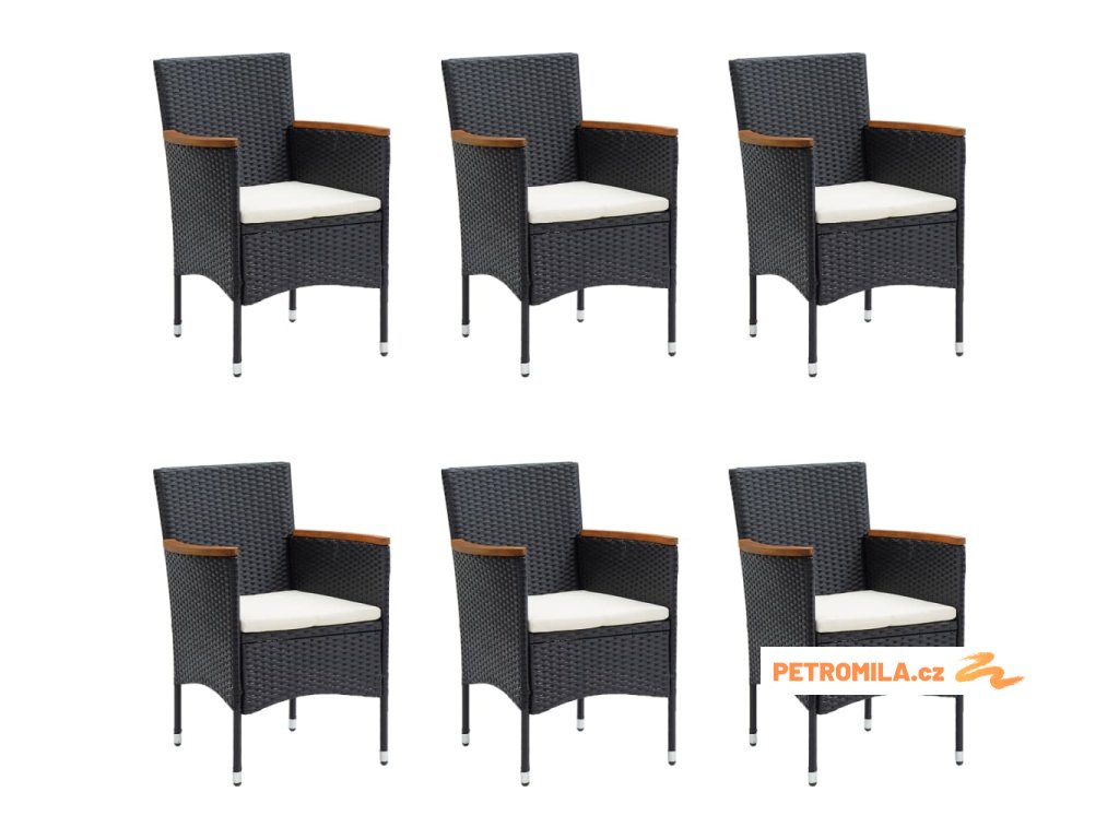 Sada zahradních pohovek s polštářem 6 pcs Černá Poly Ratan