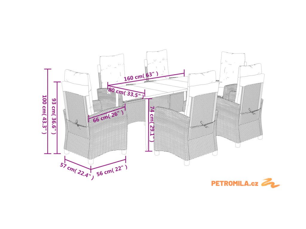 - Rozměry: 160 x 80 x 74 cm (D x Š x V)