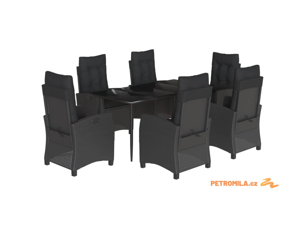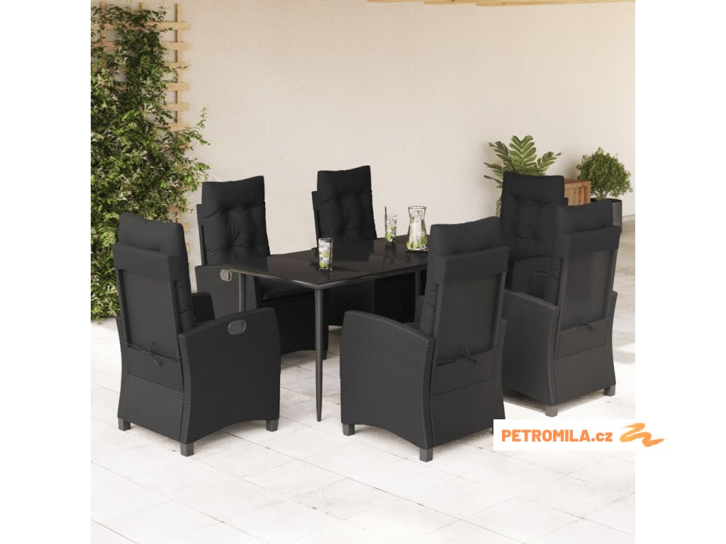 7dílný zahradní jídelní set s poduškami černý polyratan