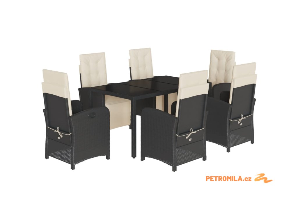7dílný zahradní jídelní set s poduškami černý polyratan