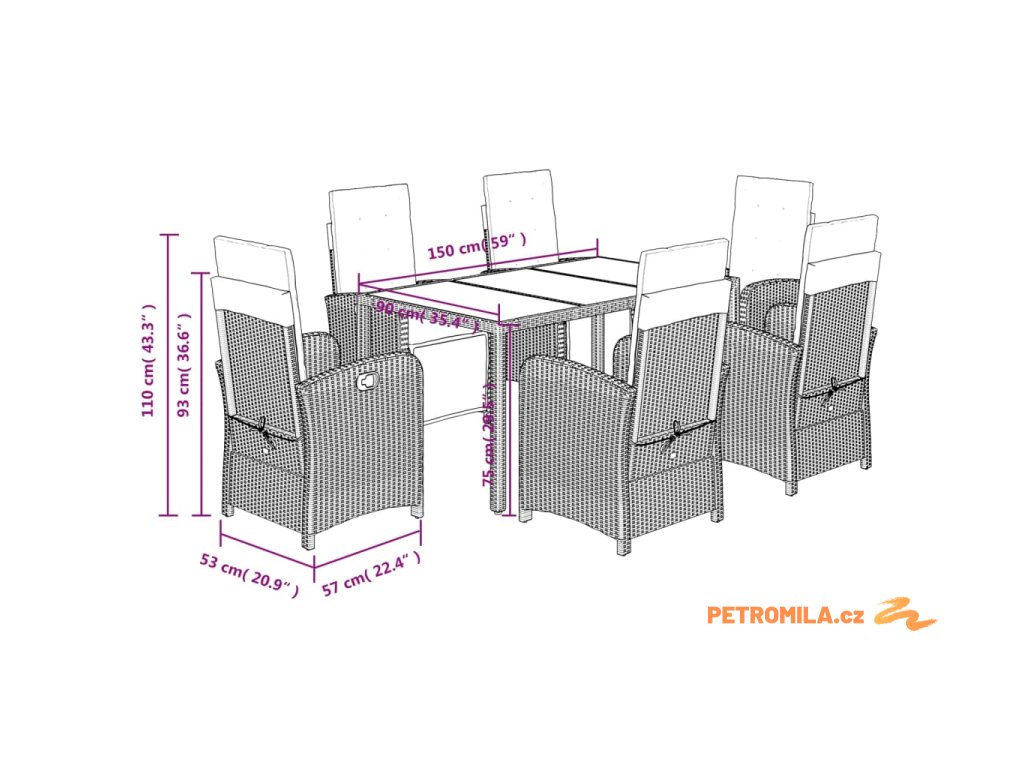 - Materiál: PE ratan, práškově lakovaná ocel, tvrzené sklo