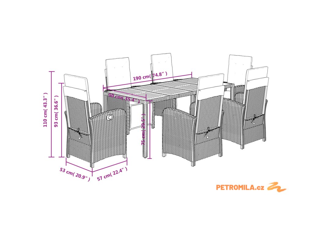 - Materiál: PE ratan, práškově lakovaná ocel, masivní akáciové dřevo