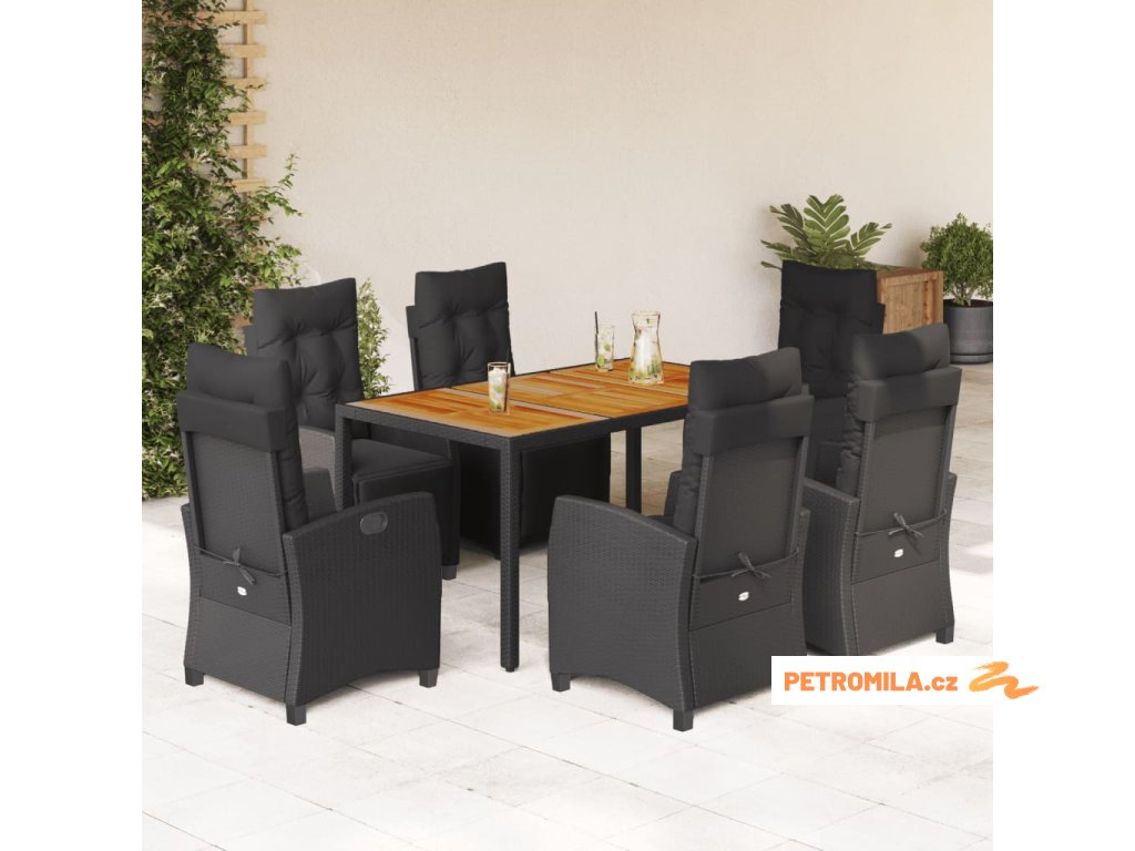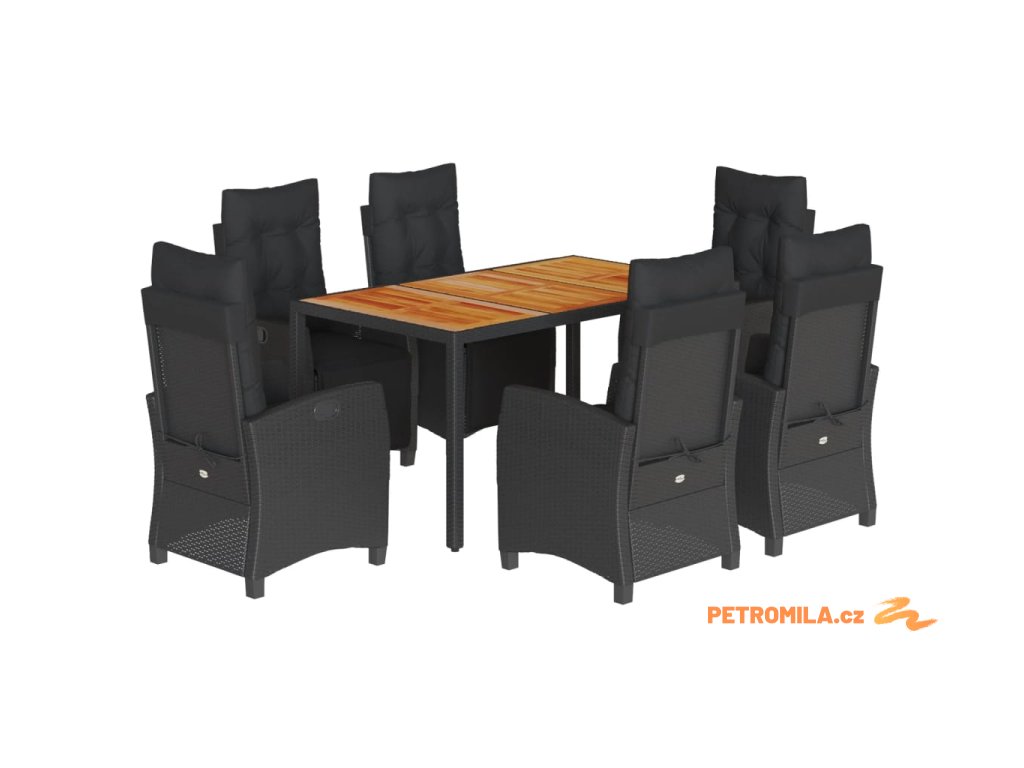 7dílný zahradní jídelní set s poduškami černý polyratan