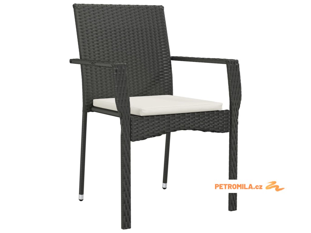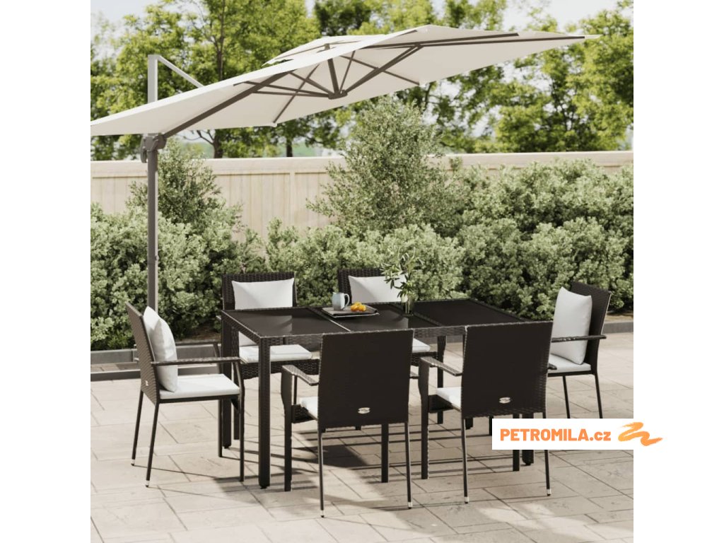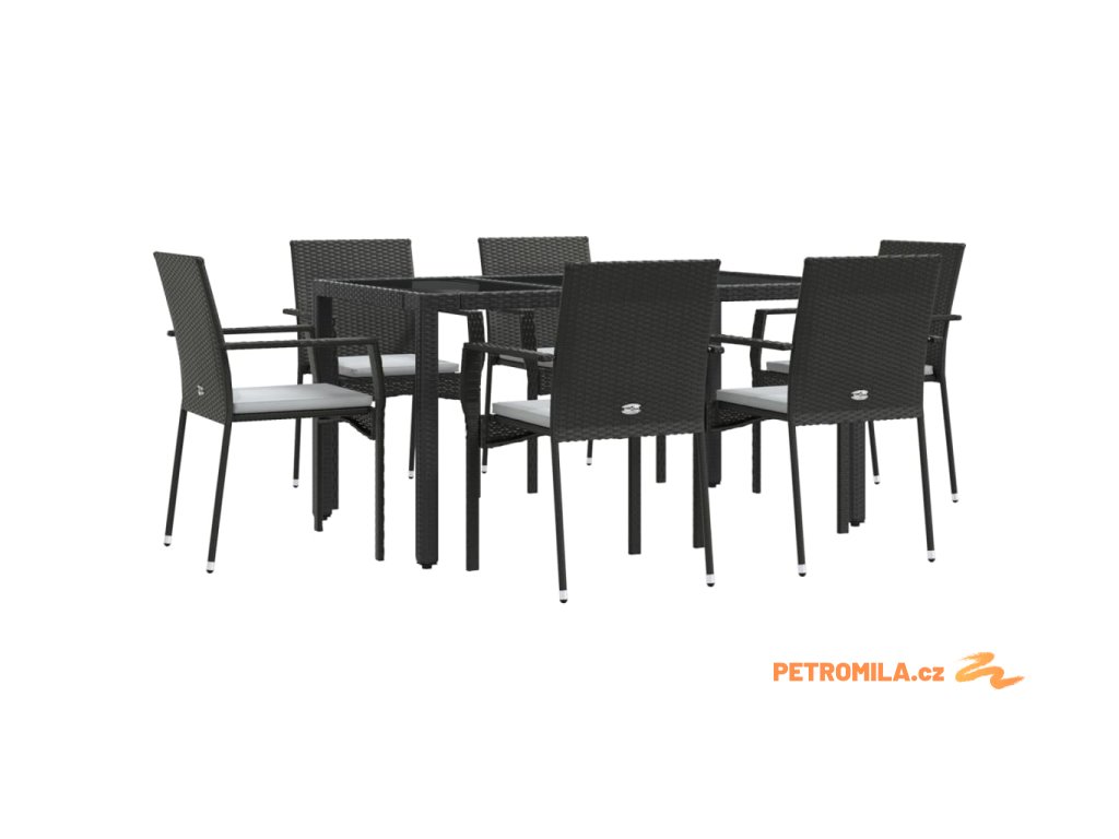 7dílný zahradní jídelní set s poduškami černý polyratan