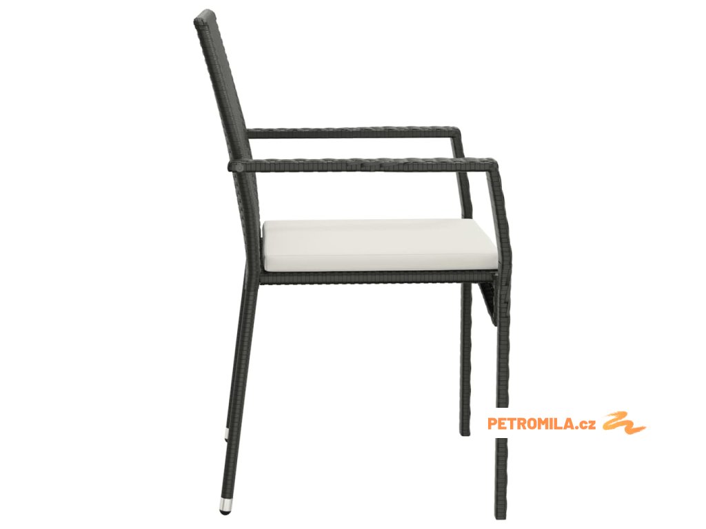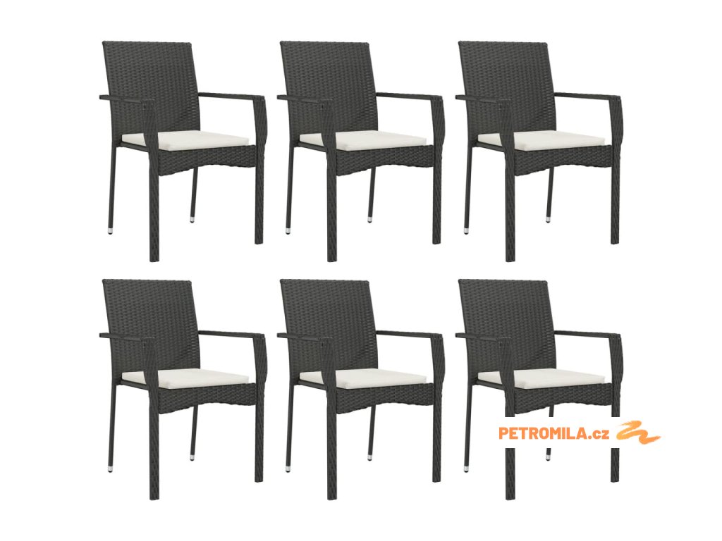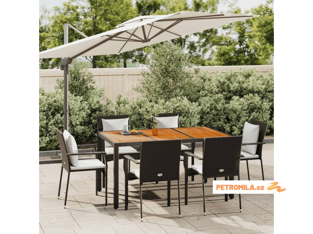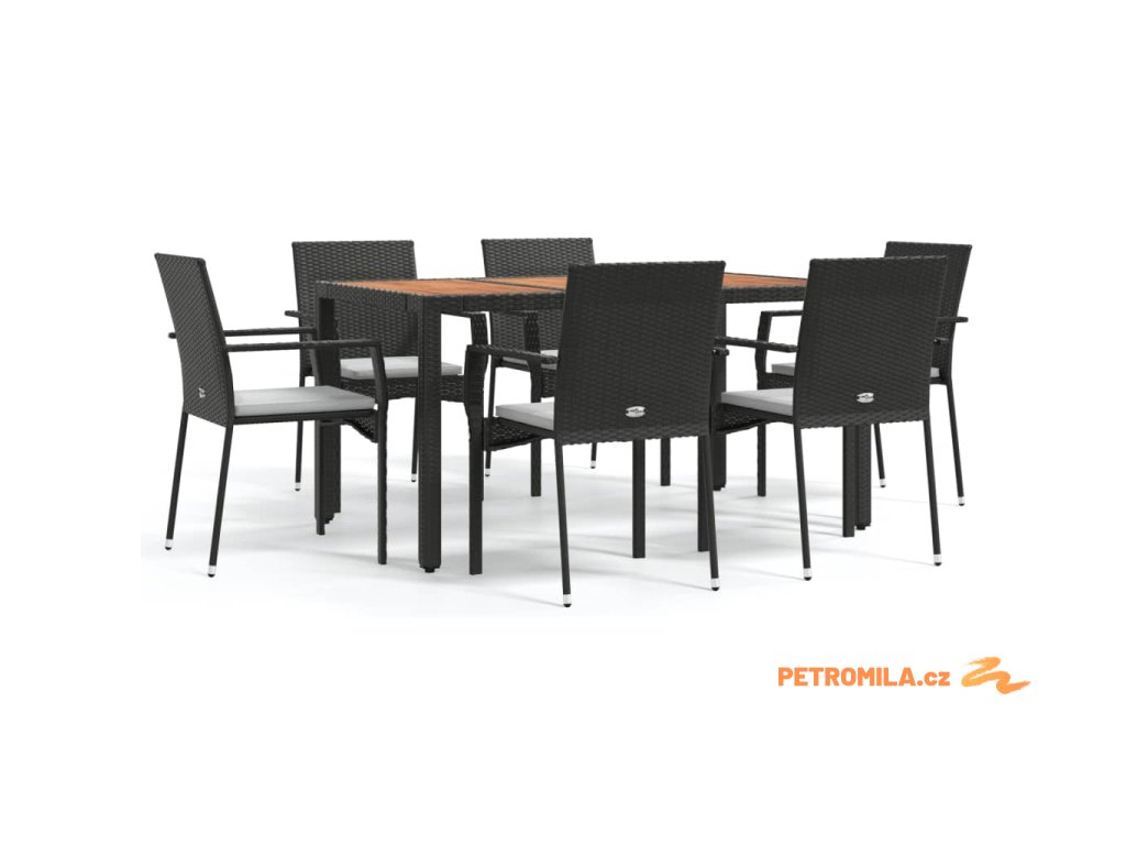 7dílný zahradní jídelní set s poduškami černý polyratan