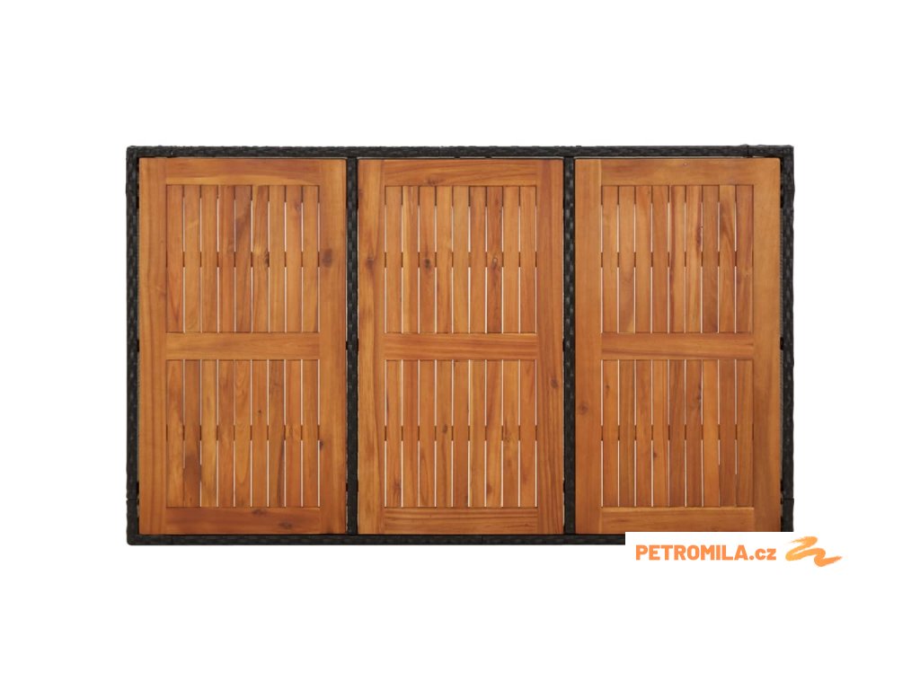 - Materiál: PE ratan, práškově lakovaná ocel, masivní akáciové dřevo s olejovou povrchovou úpravou