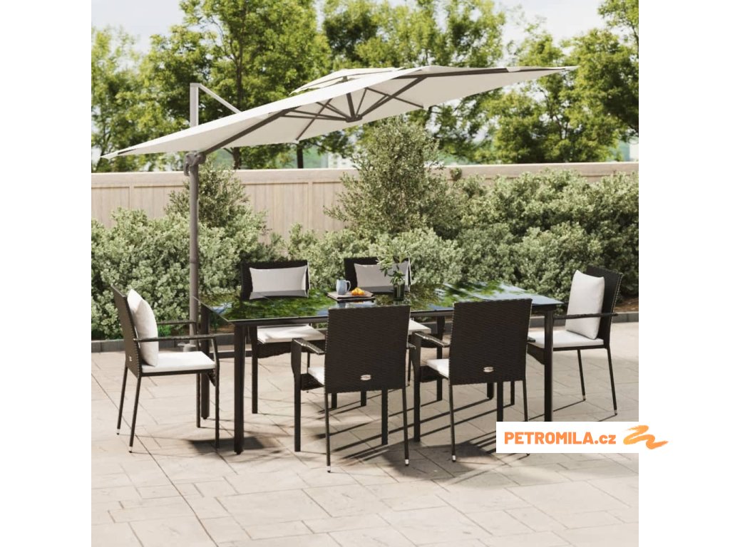 7dílný zahradní jídelní set s poduškami černý polyratan