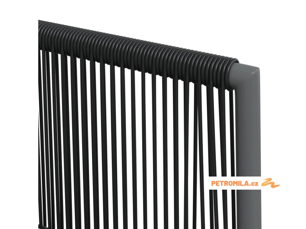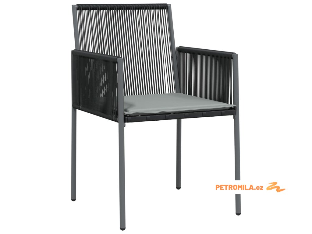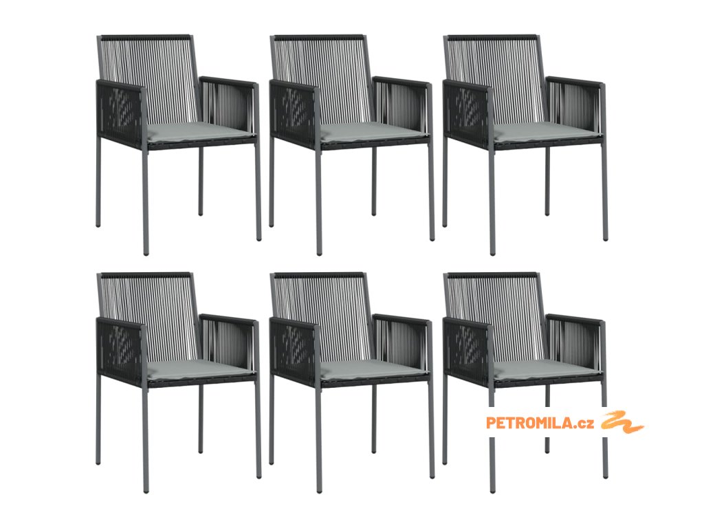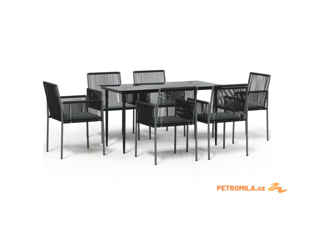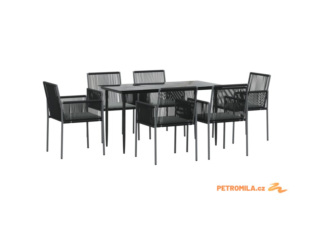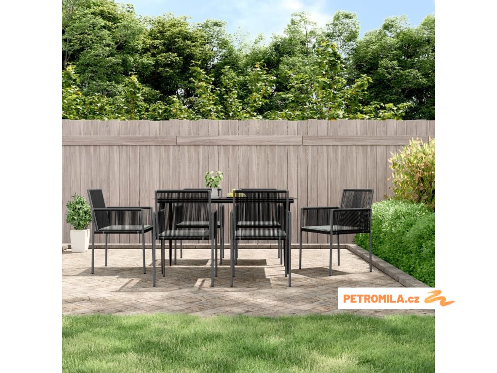 7dílný zahradní jídelní set s poduškami černý polyratan a ocel