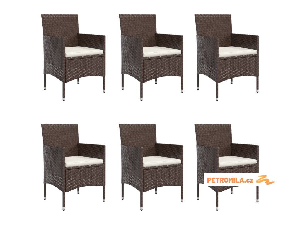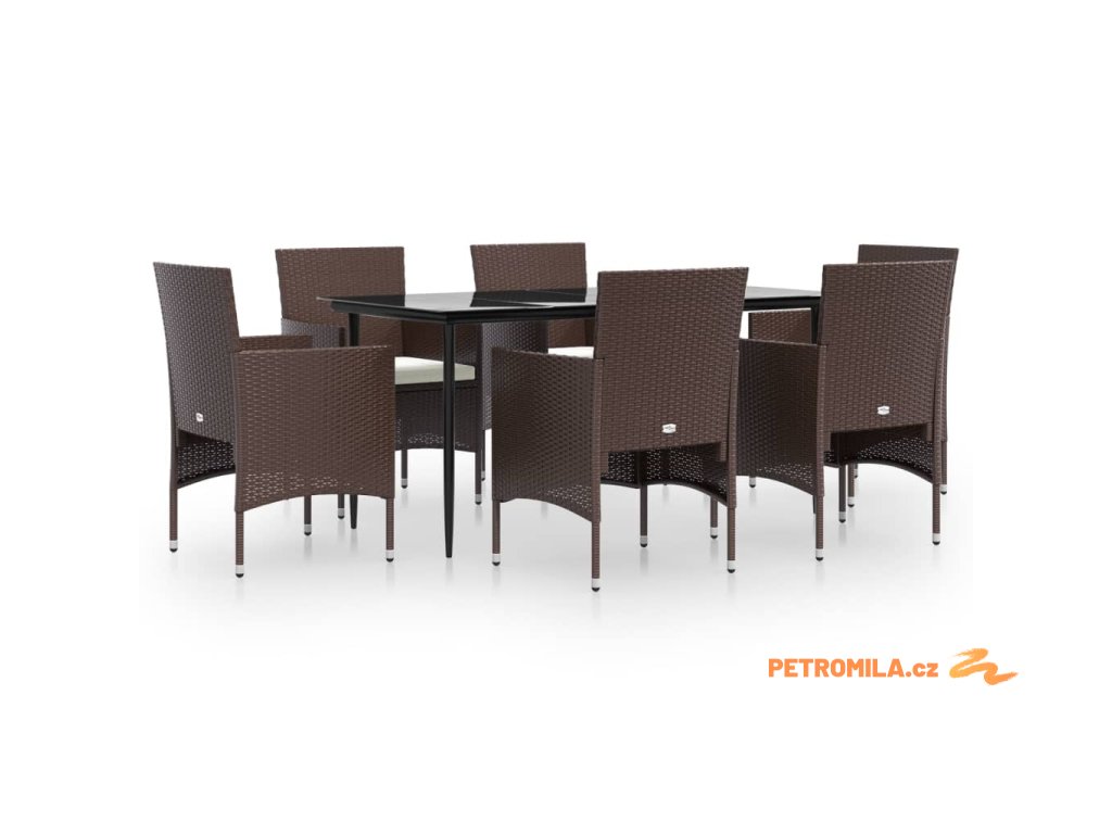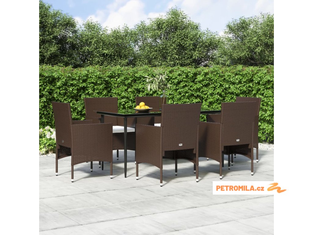 7dílný zahradní jídelní set s poduškami hnědý a černý