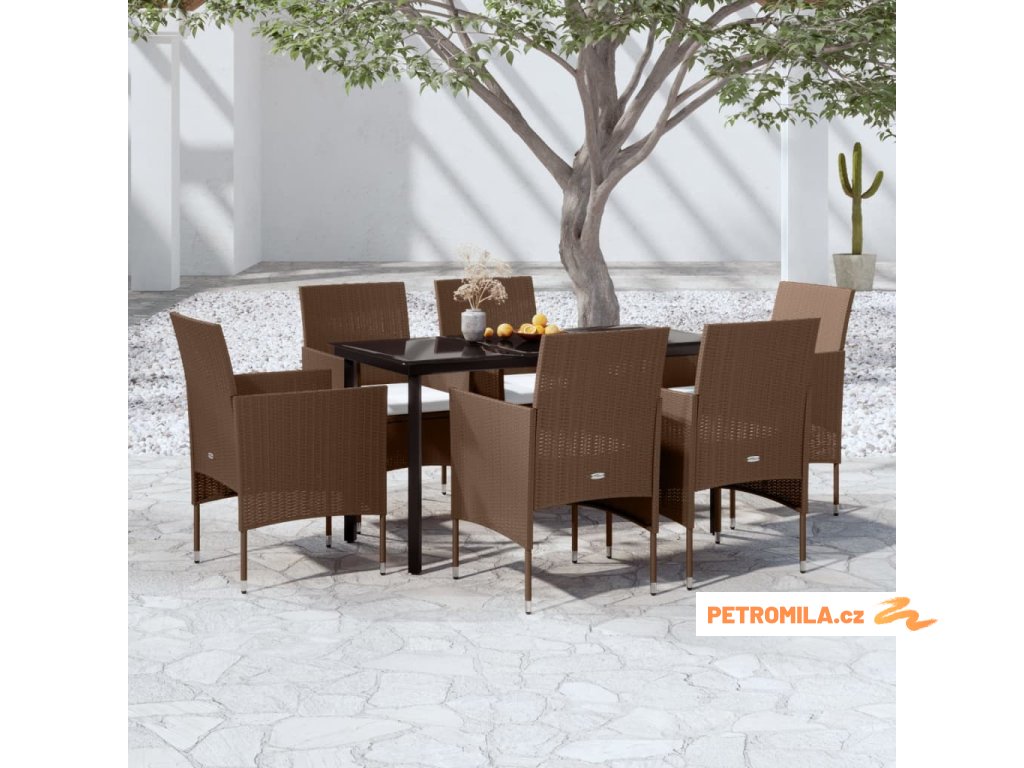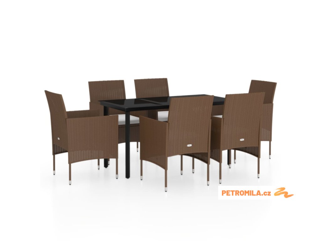 7dílný zahradní jídelní set s poduškami hnědý a černý