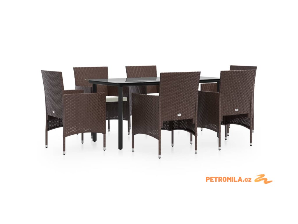 7dílný zahradní jídelní set s poduškami hnědý a černý