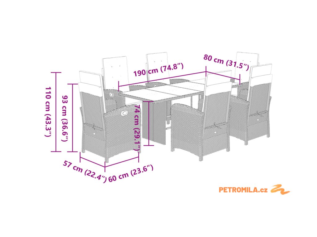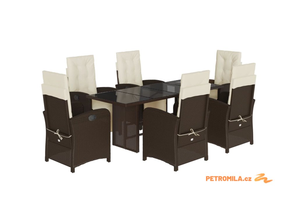 7dílný zahradní jídelní set s poduškami hnědý polyratan
