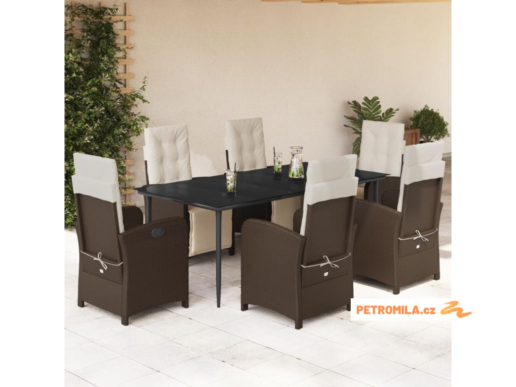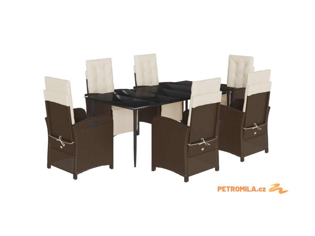 7dílný zahradní jídelní set s poduškami hnědý polyratan