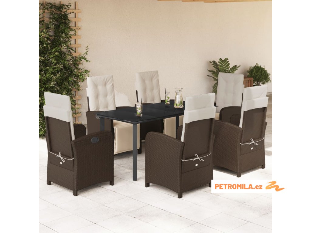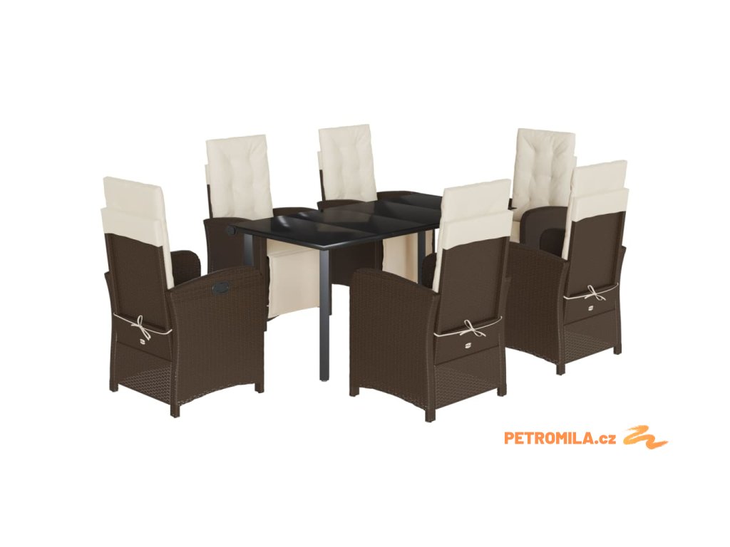 7dílný zahradní jídelní set s poduškami hnědý polyratan