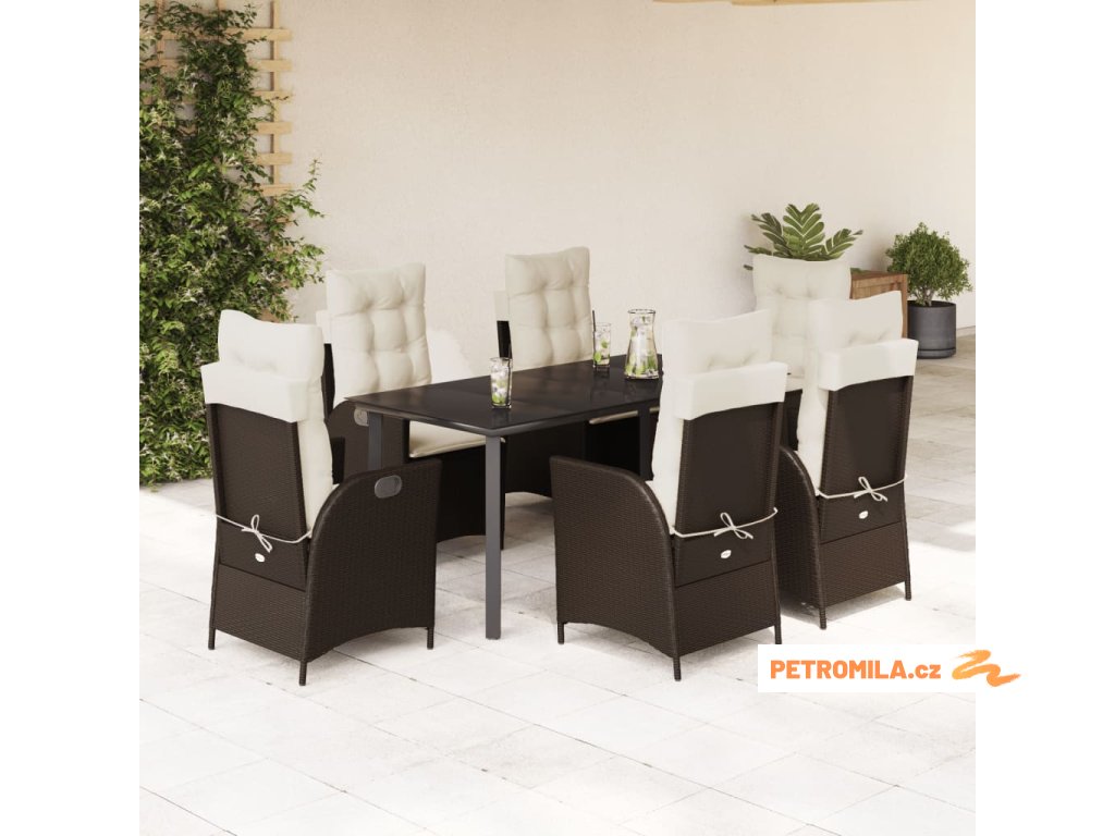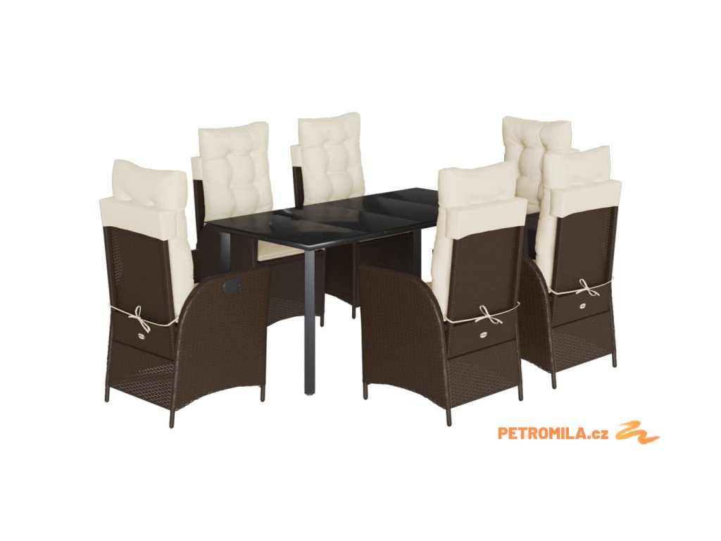 7dílný zahradní jídelní set s poduškami hnědý polyratan