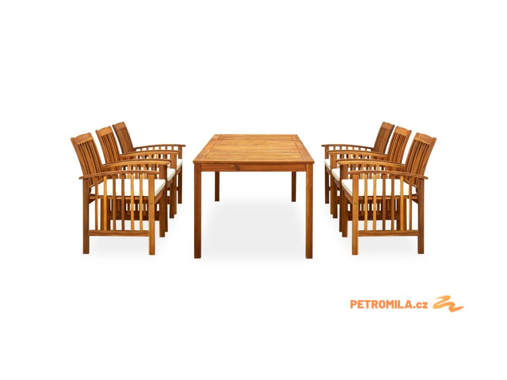 7dílný zahradní jídelní set s poduškami masivní akáciové dřevo