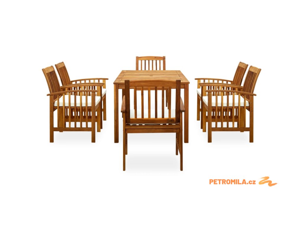 7dílný zahradní jídelní set s poduškami masivní akáciové dřevo