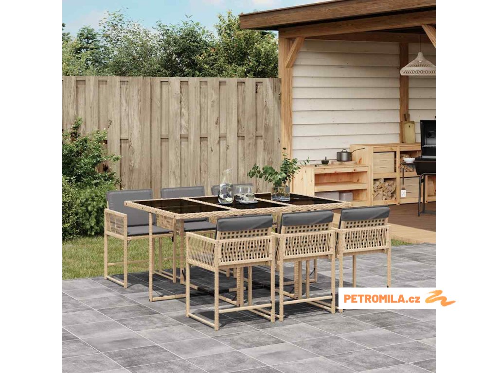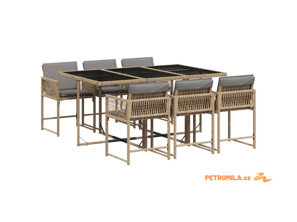 7dílný zahradní jídelní set s poduškami mix béžové polyratan