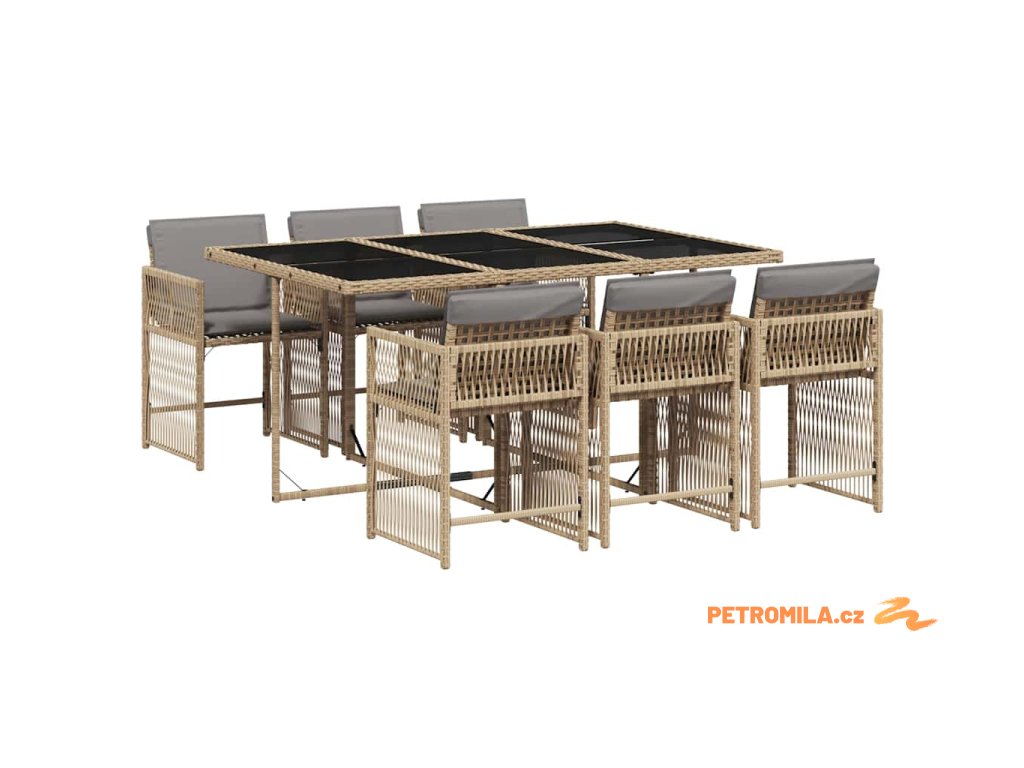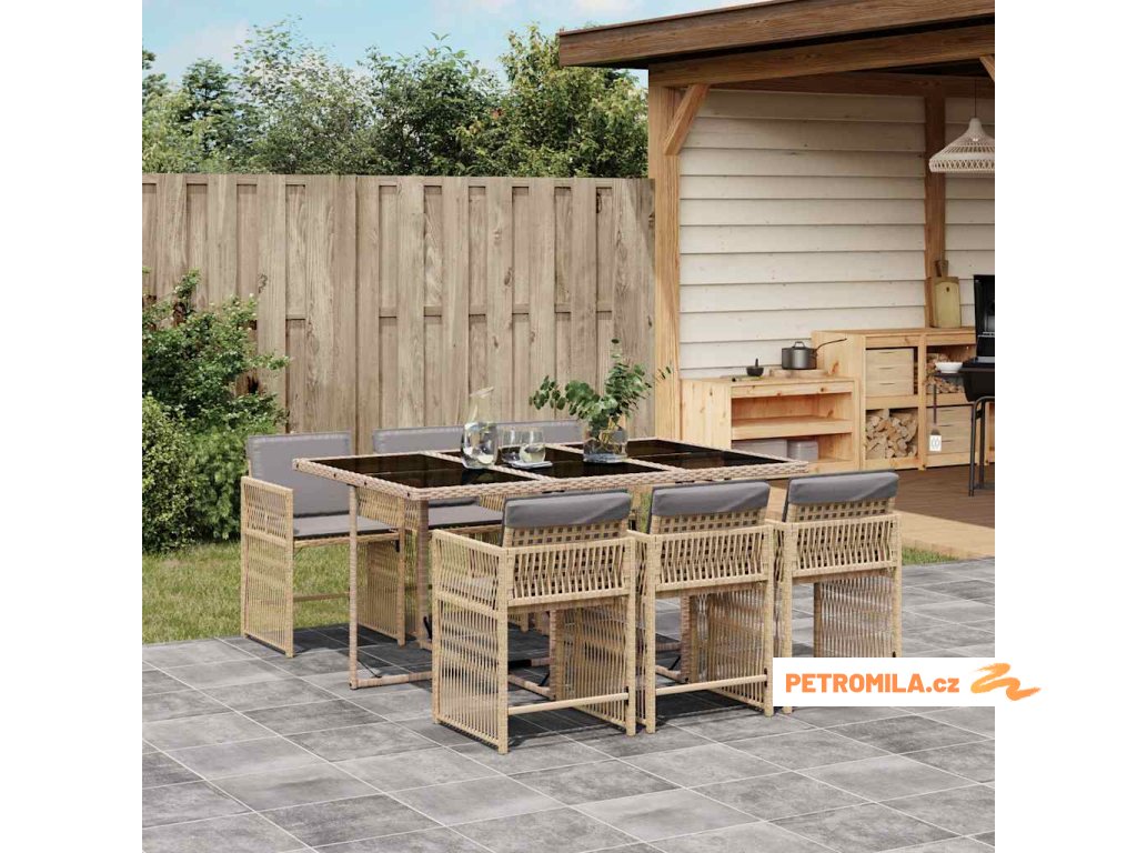 7dílný zahradní jídelní set s poduškami mix béžové polyratan