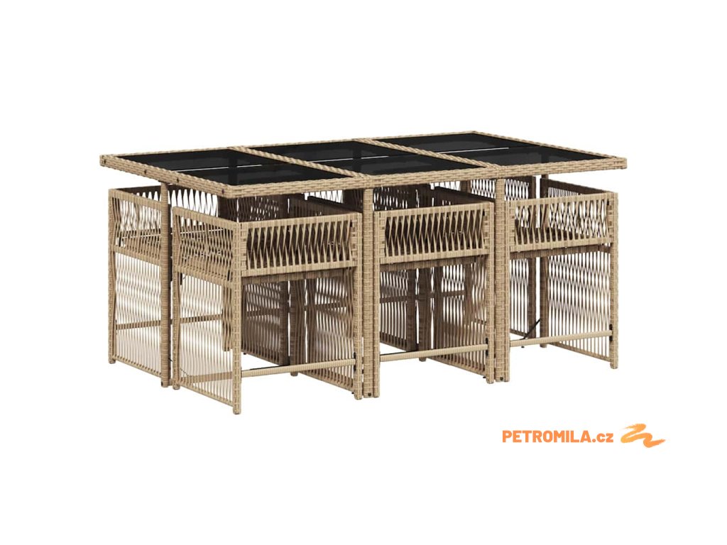 - Materiál: PE ratan, práškově lakovaná ocel, tvrzené sklo
