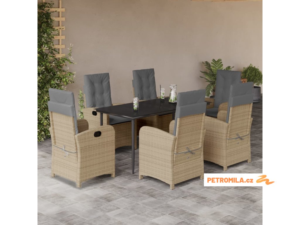 7dílný zahradní jídelní set s poduškami mix béžové polyratan