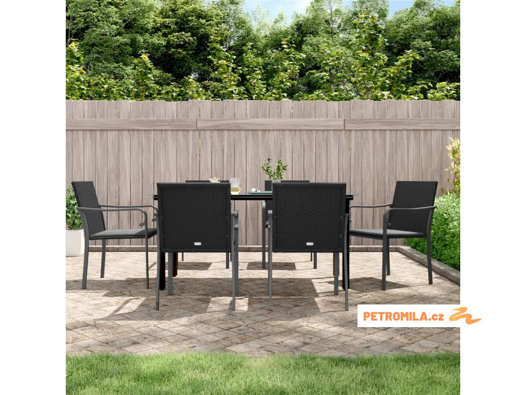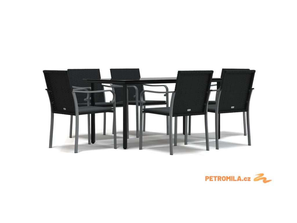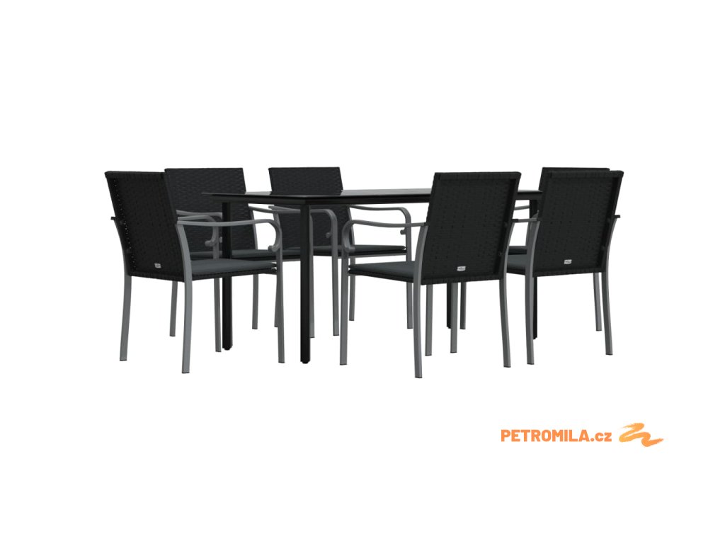 7dílný zahradní jídelní set s poduškami polyratan a ocel