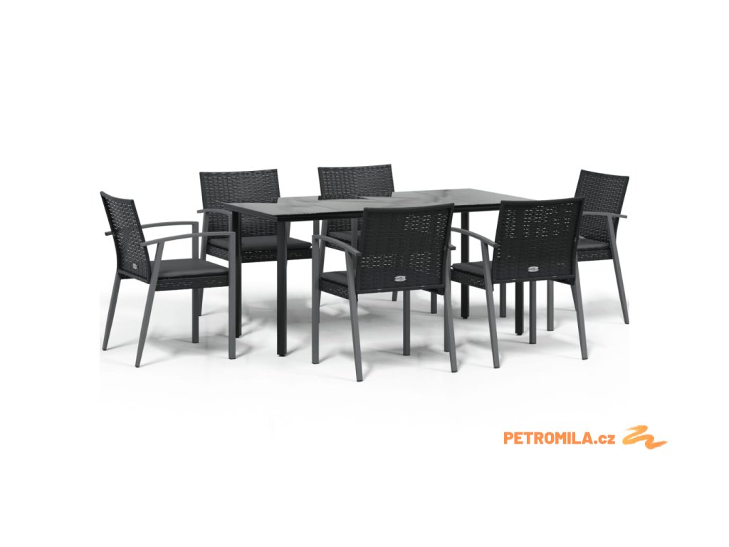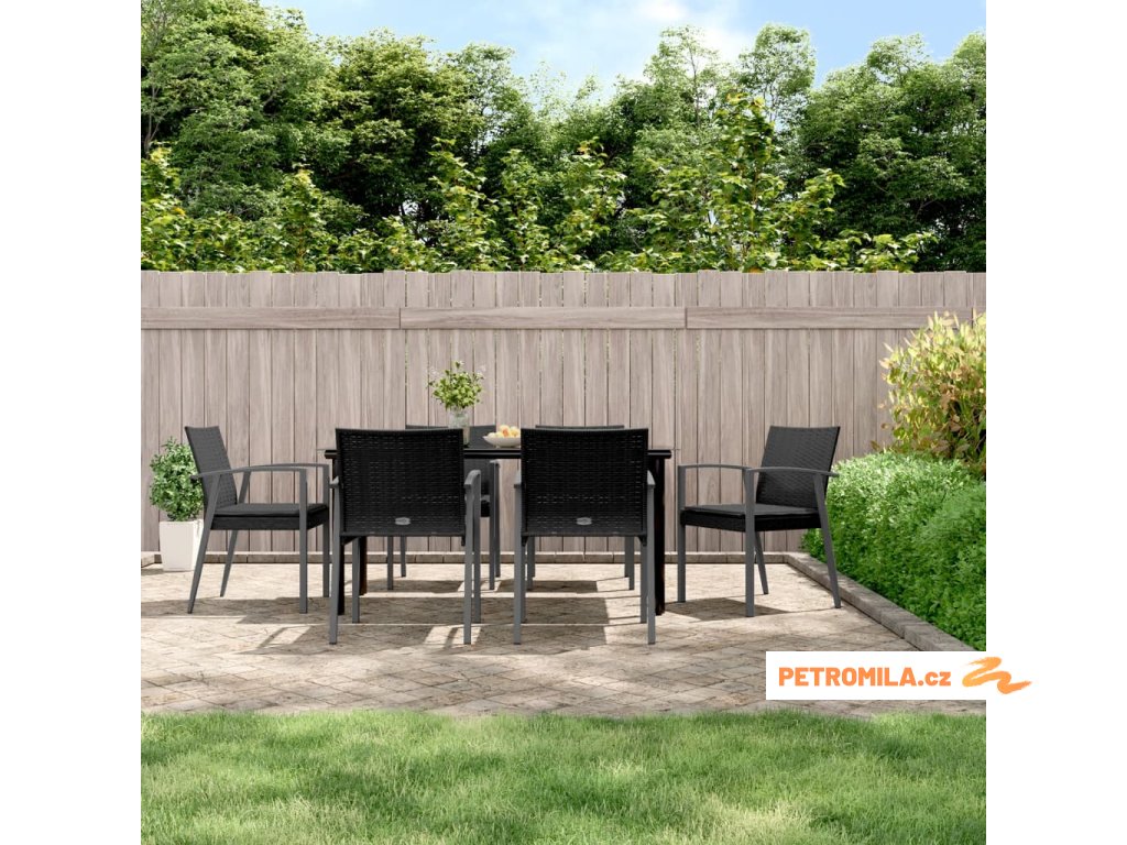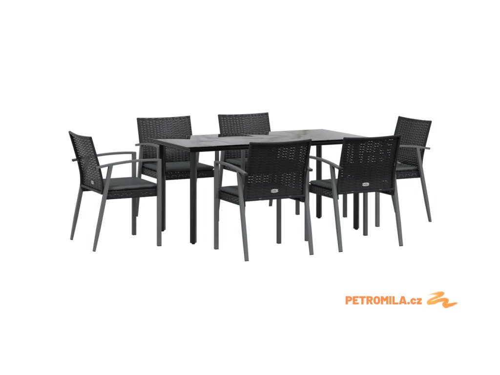7dílný zahradní jídelní set s poduškami černý polyratan