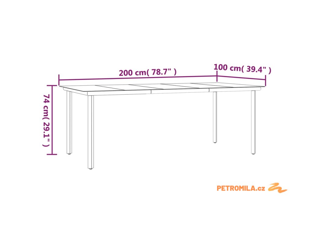 - Rozměry: 200 x 100 x 74 cm (D x Š x V)