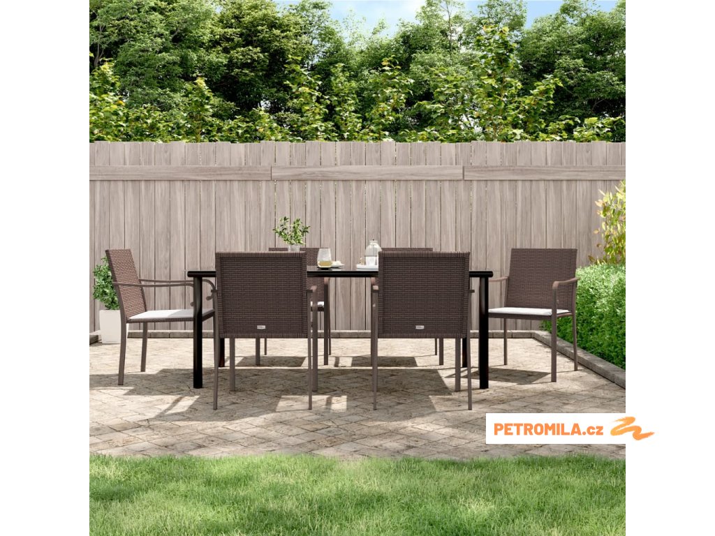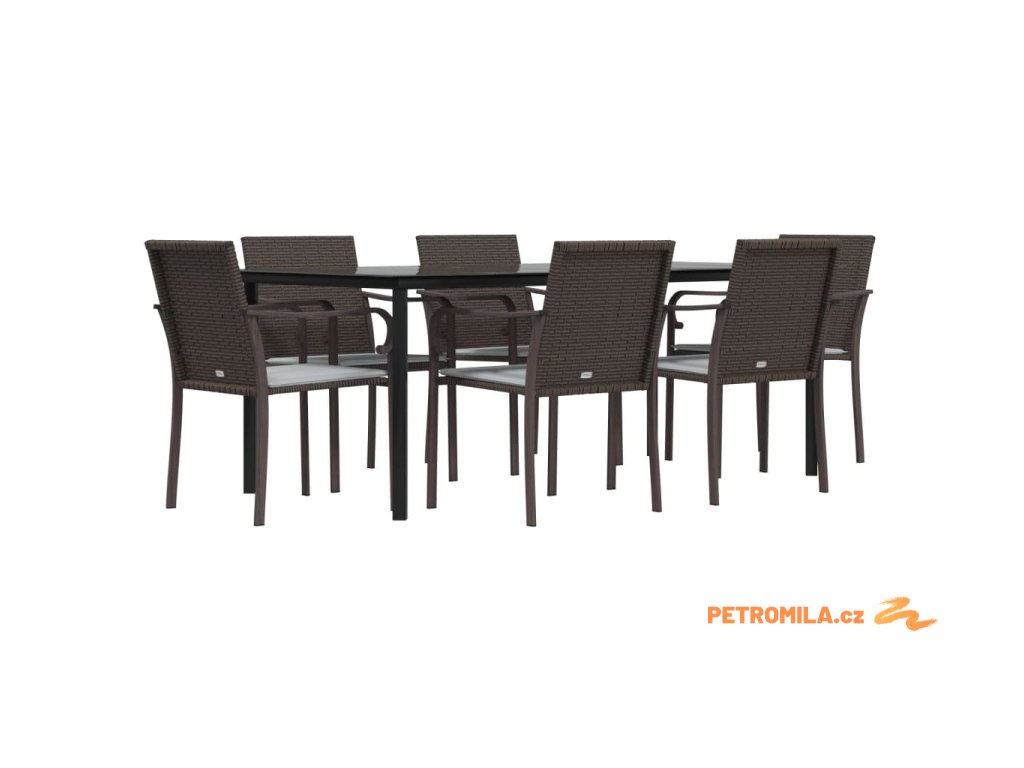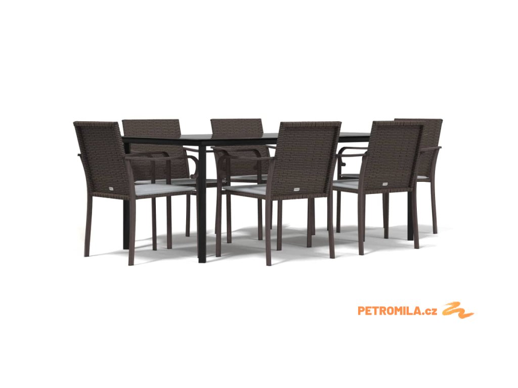 7dílný zahradní jídelní set s poduškami polyratan a ocel