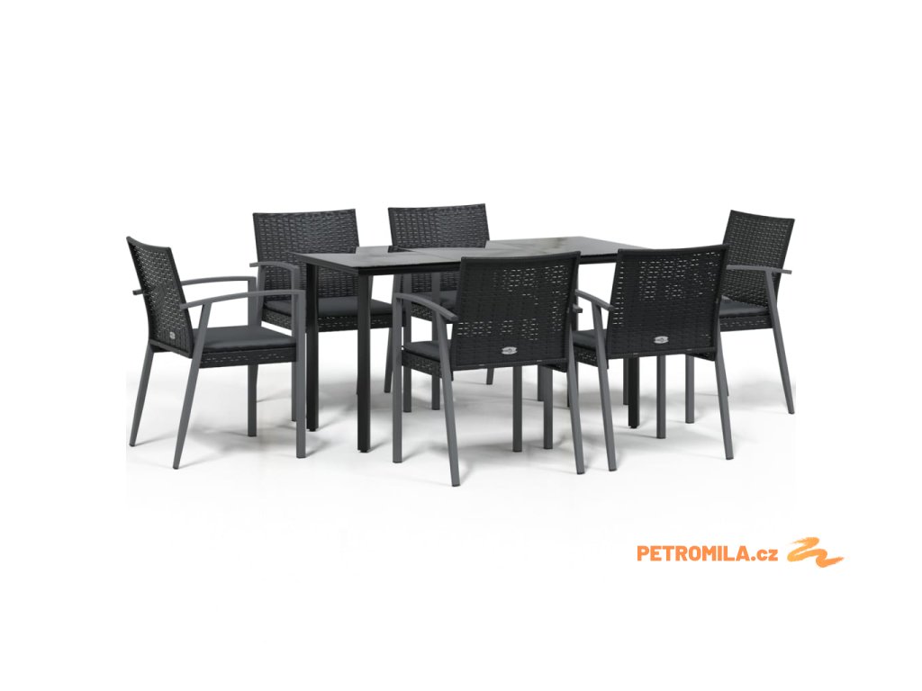 7dílný zahradní jídelní set s poduškami polyratan a ocel