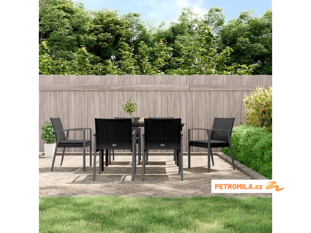 9dílný zahradní jídelní set s poduškami černý polyratan