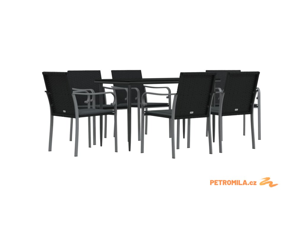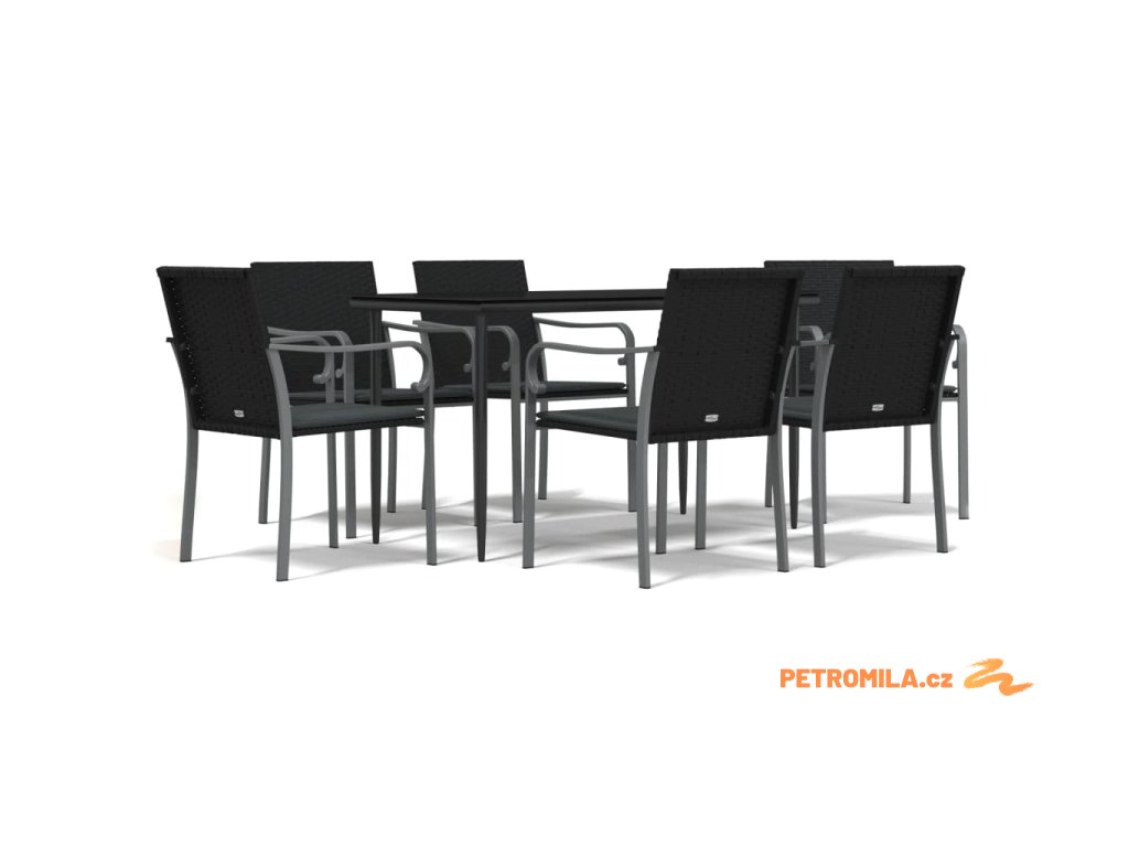 7dílný zahradní jídelní set s poduškami polyratan a ocel
