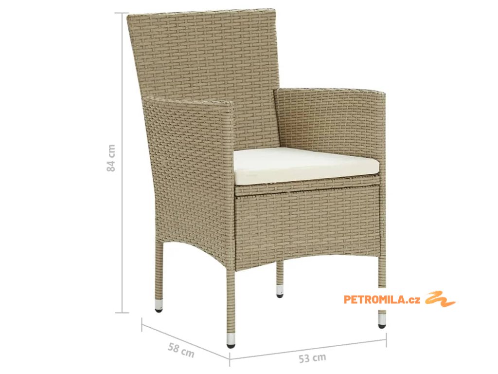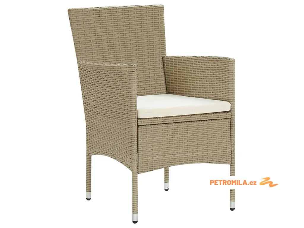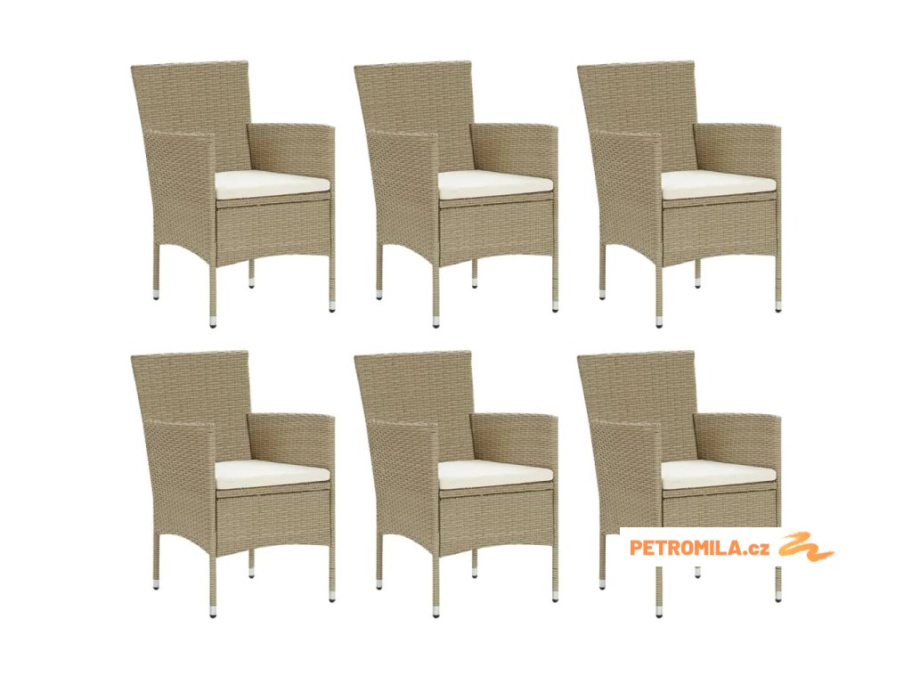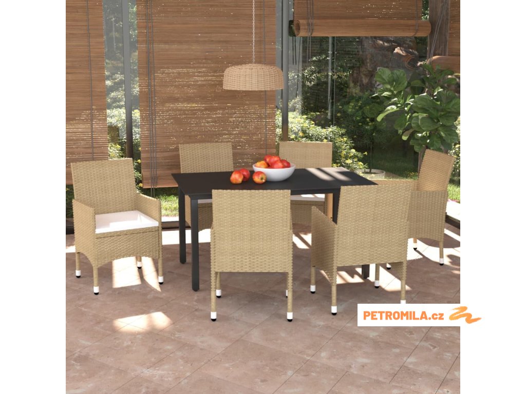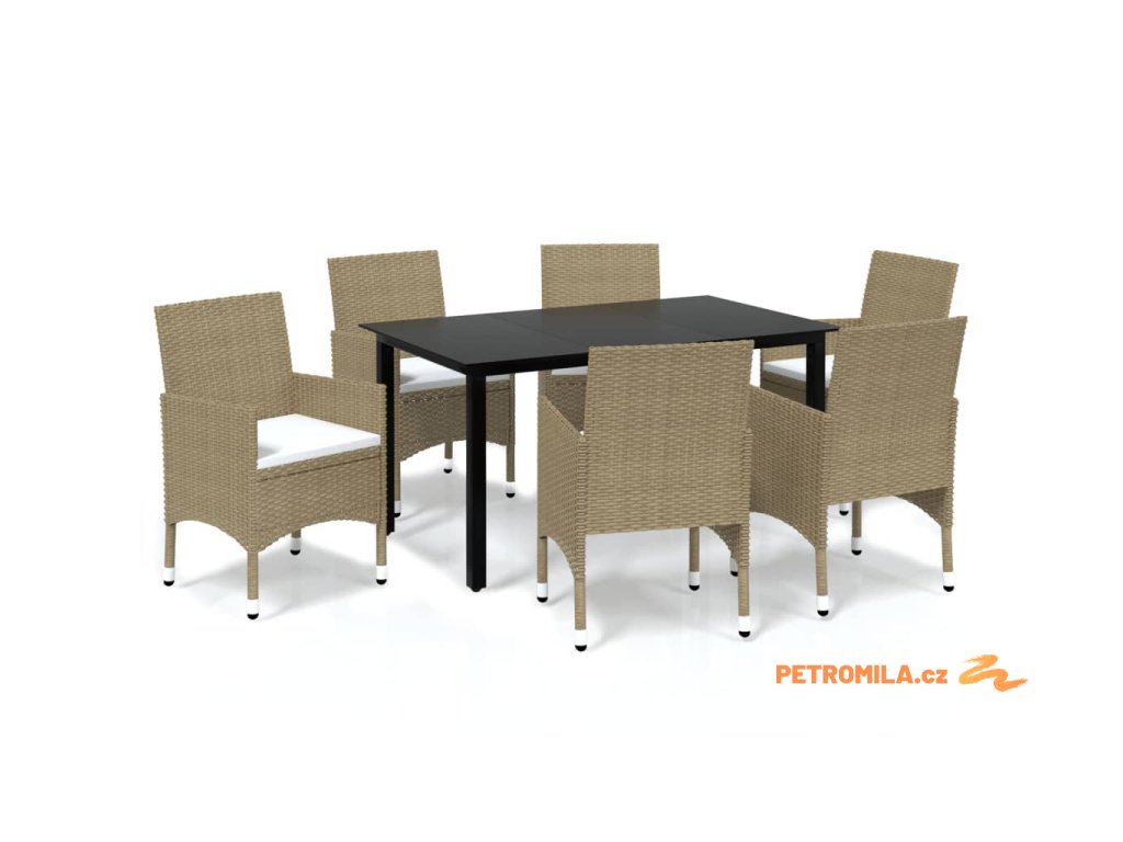 7dílný zahradní jídelní set s poduškami polyratan béžový